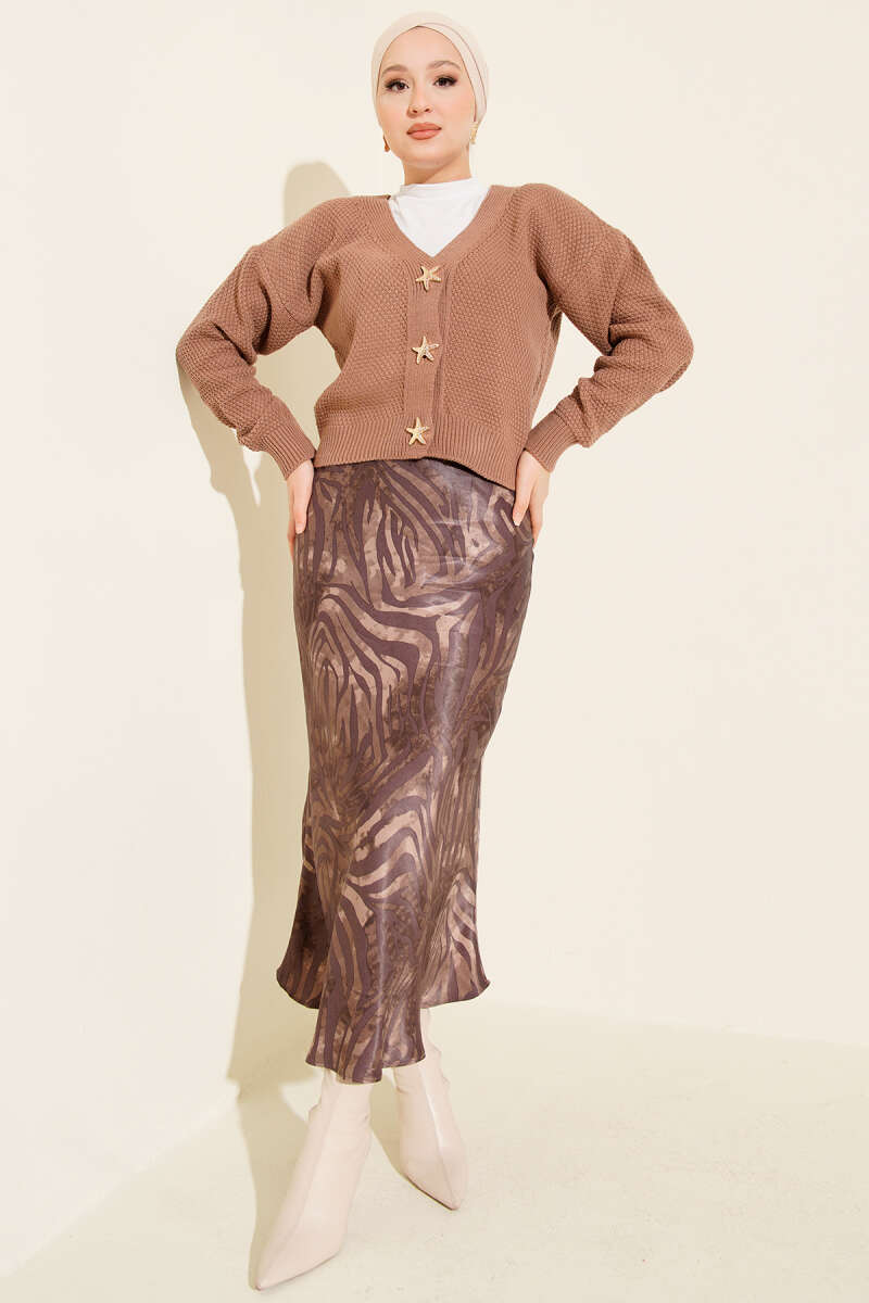 Leopar Garnili Kapşonlu İkili Takım Acı Kahve