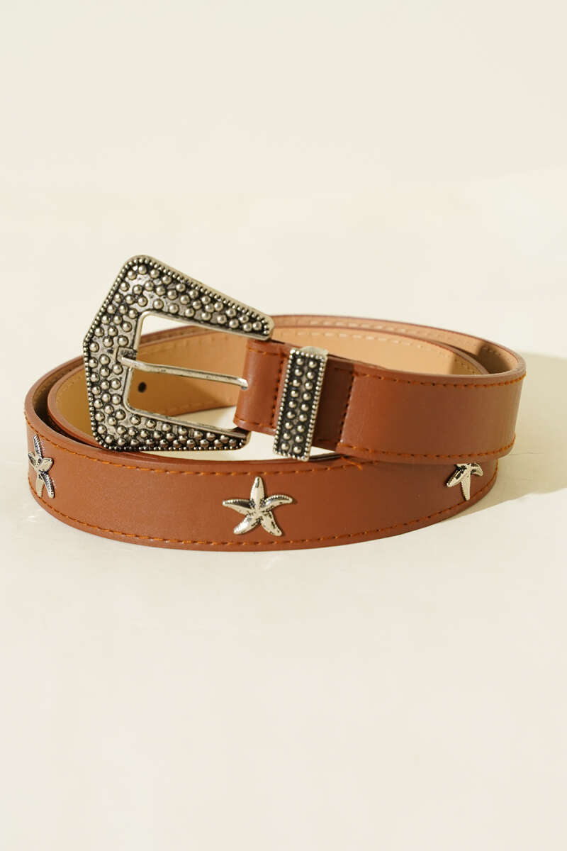 Metal Tokalı Deniz Yıldızı Desenli Kemer Acı Kahve