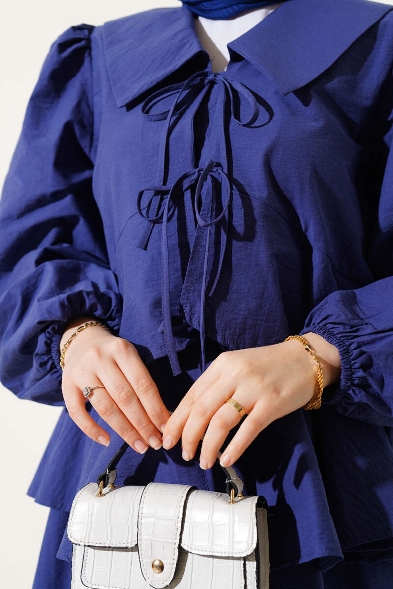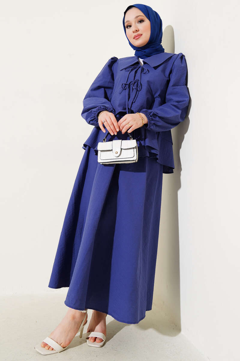 Denizci Yaka Bağlamalı Etekli İkili Takım Leylak