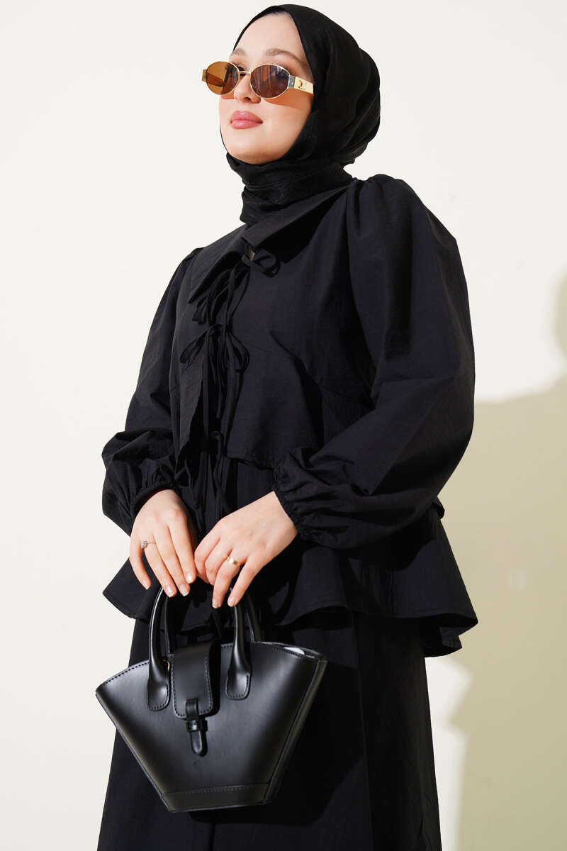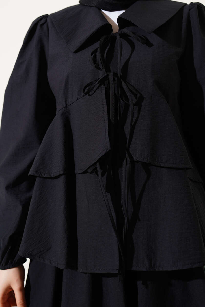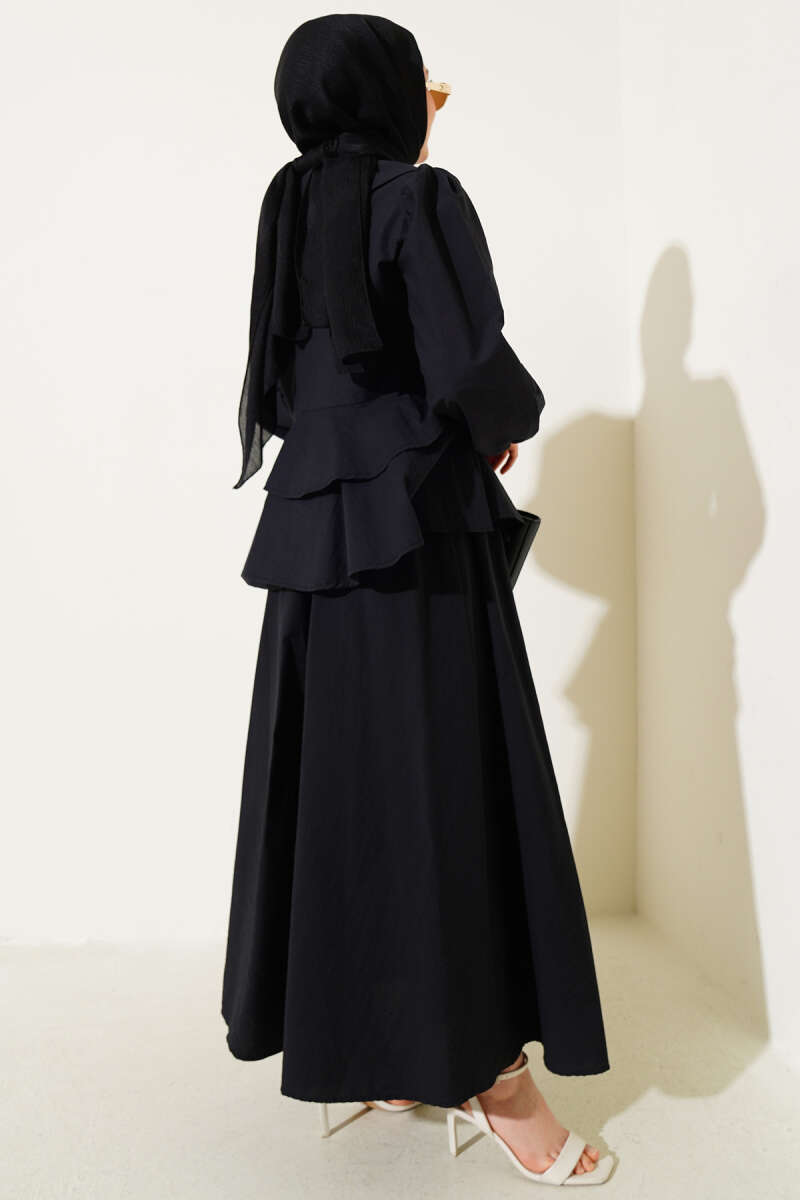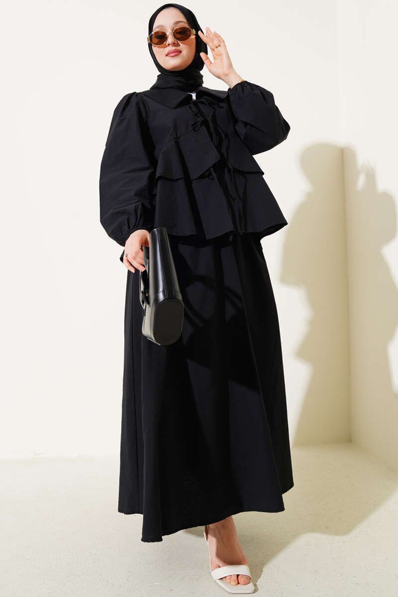 Denizci Yaka Bağlamalı Etekli İkili Takım Siyah