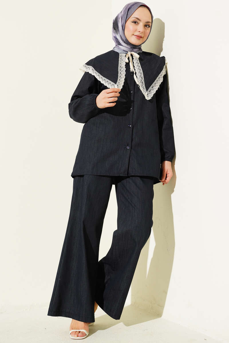 Denizci Yaka Dantelli Etekli İkili Takım Antrasit