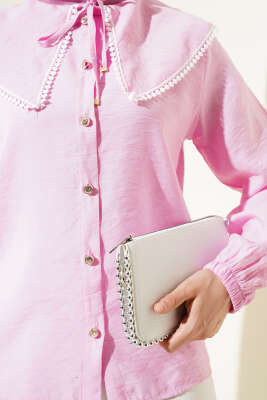 Gizli Düğmeli Bel Kuşaklı Gömlek Pembe