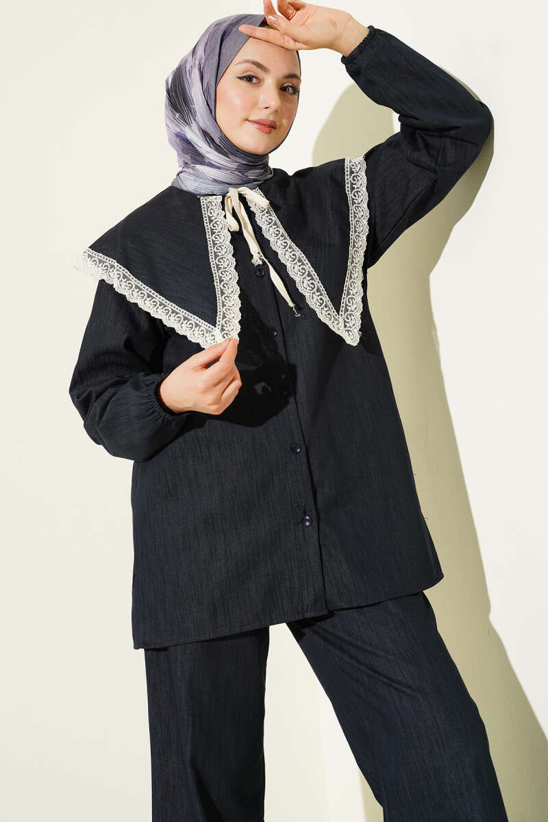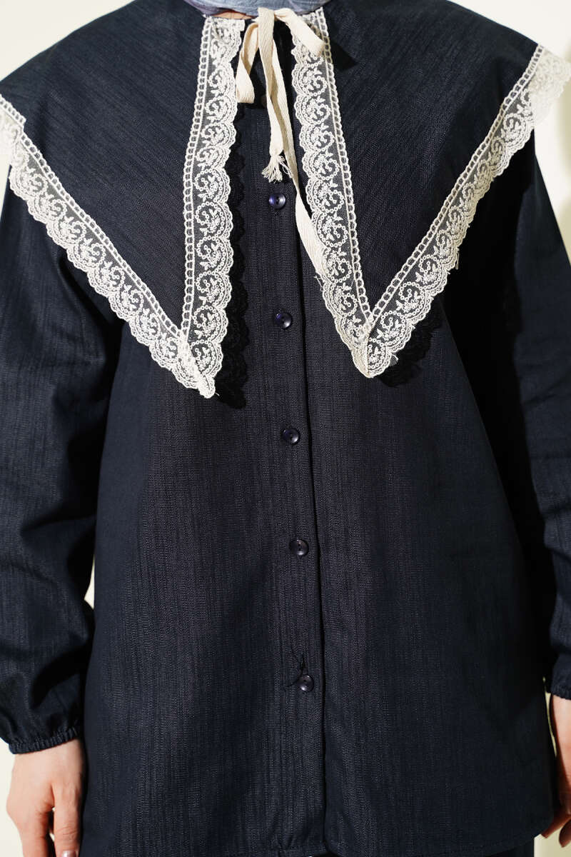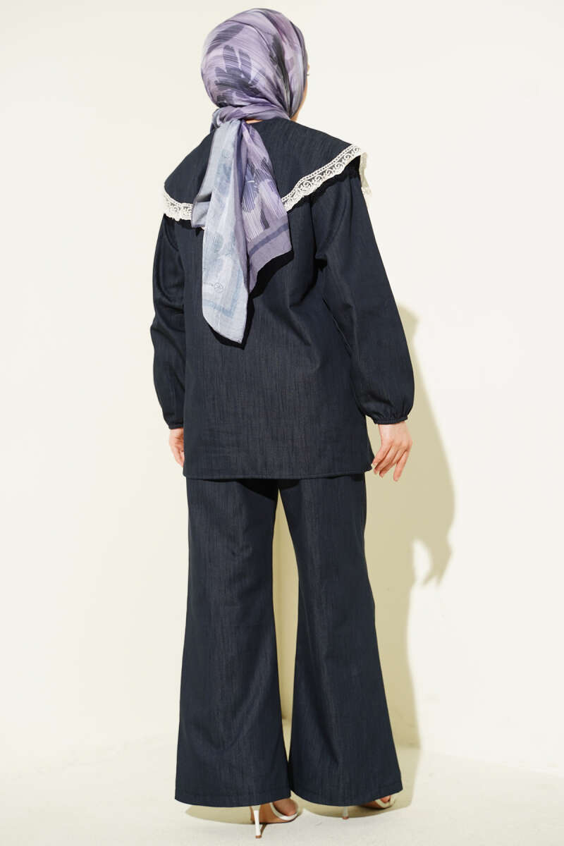 Denizci Yaka Dantelli Tunik İkili Takım Mavi