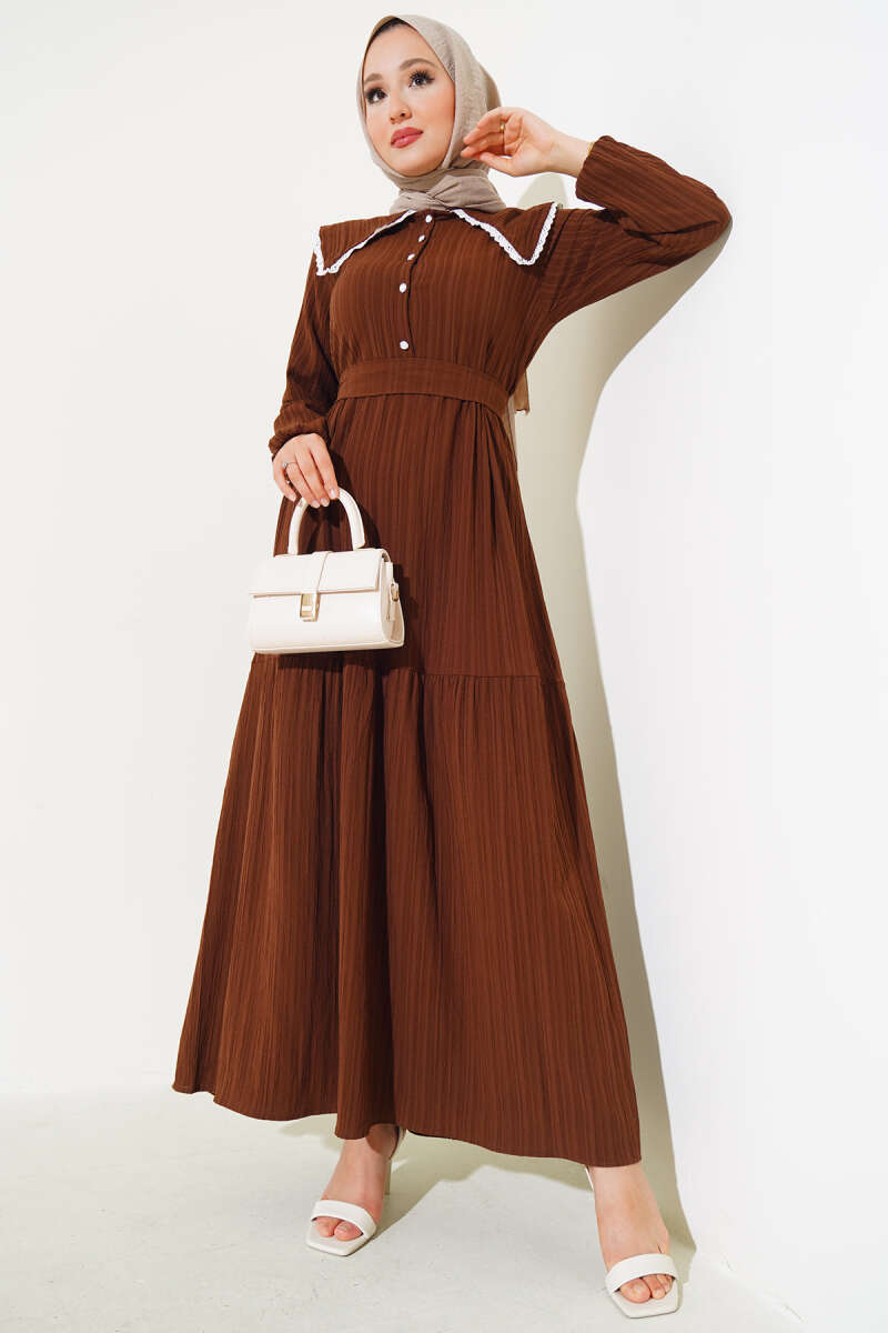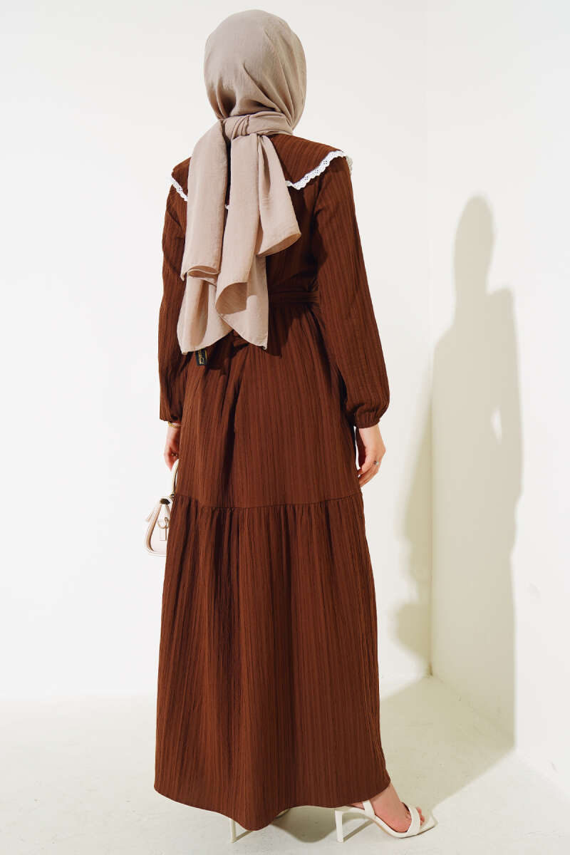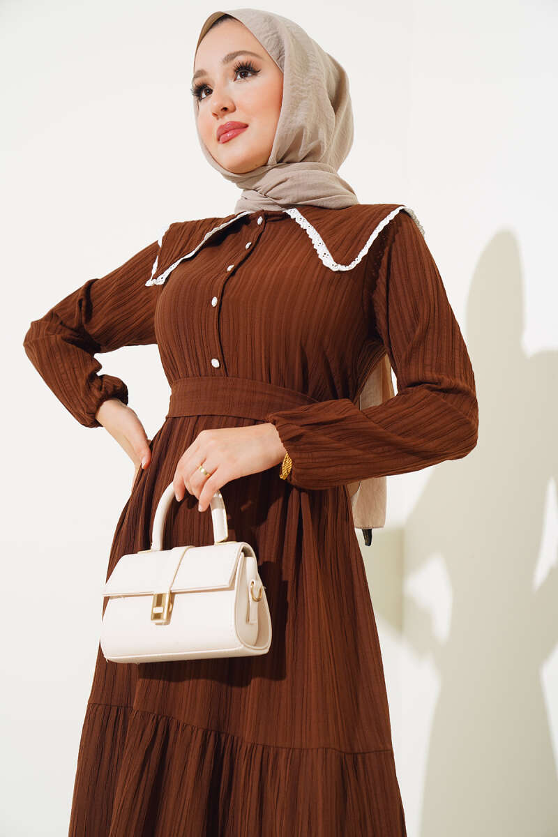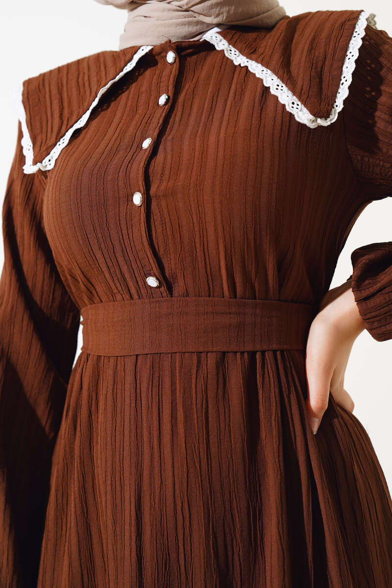 Scuba Pens Detaylı Kemerli Elbise Kahve