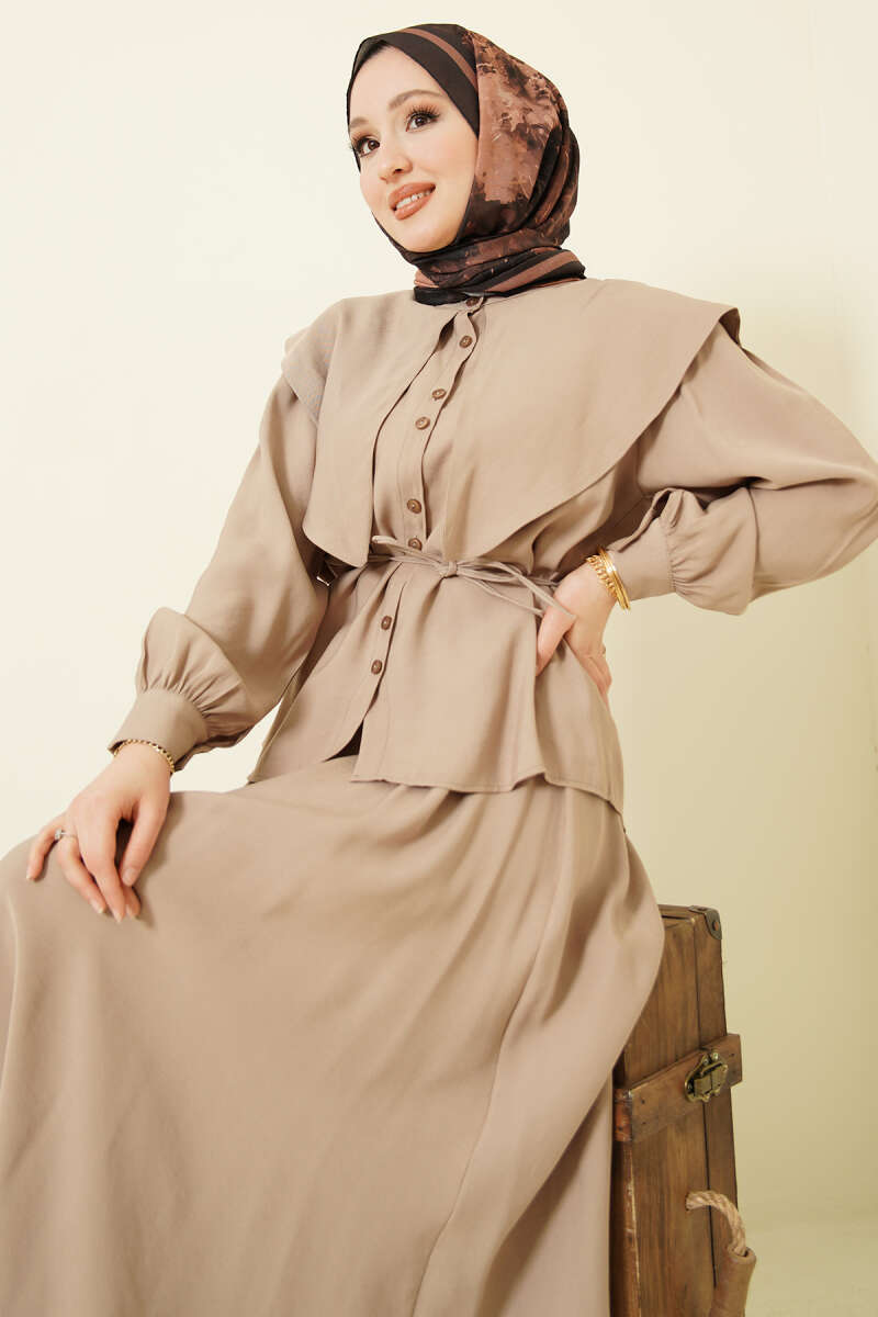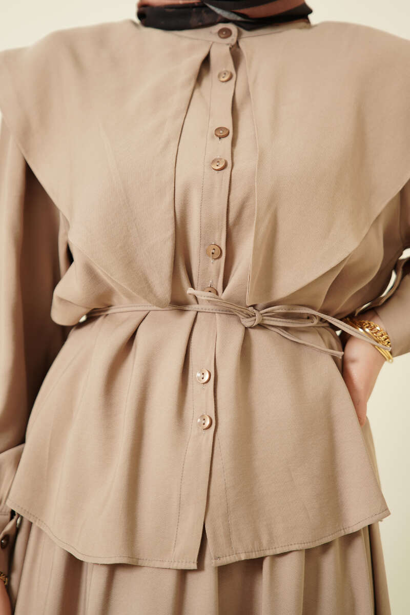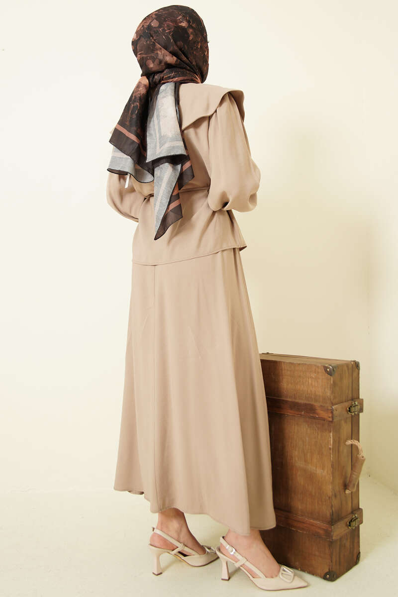 Denizci Yaka İp Kuşaklı Tensel Etekli Takım Bej