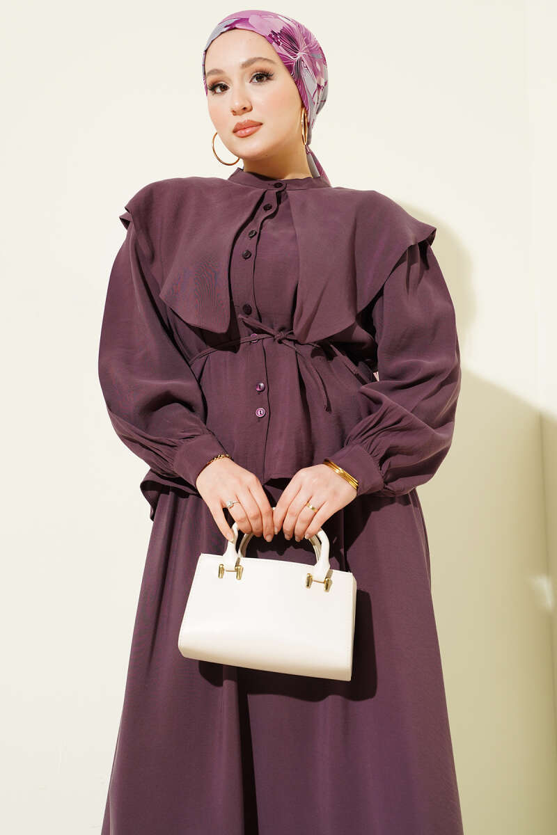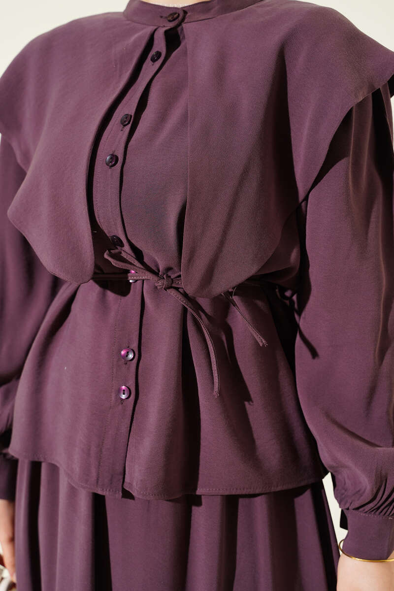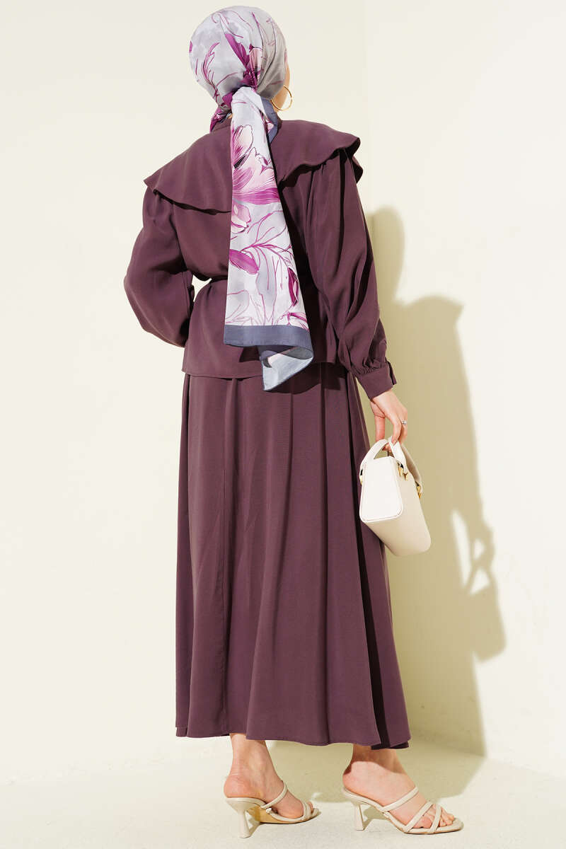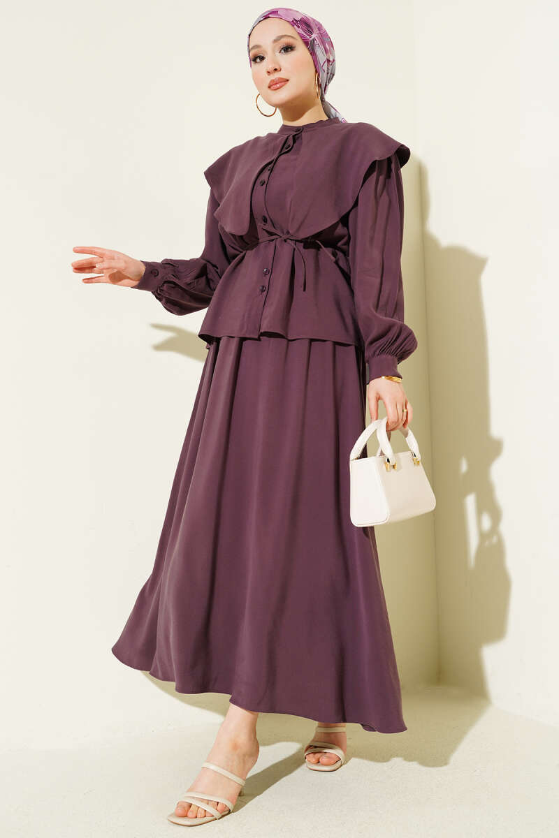 Denizci Yaka İp Kuşaklı Tensel Etekli Takım Mürdüm