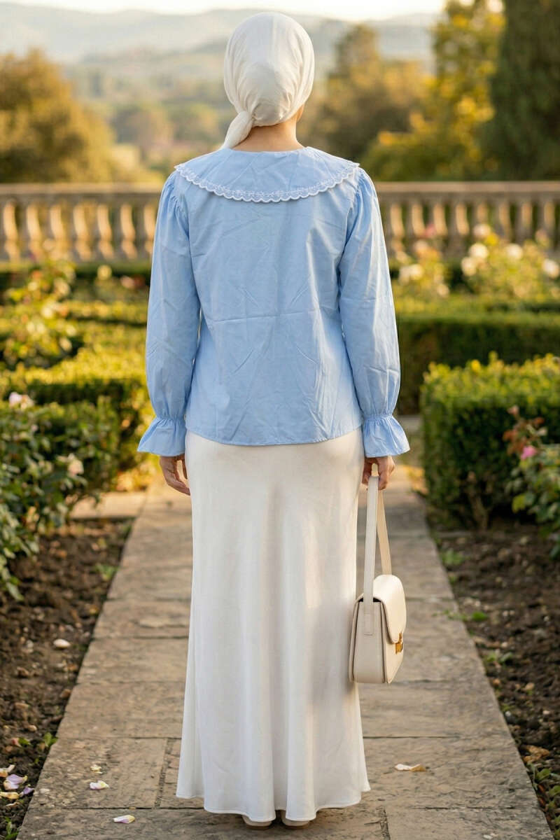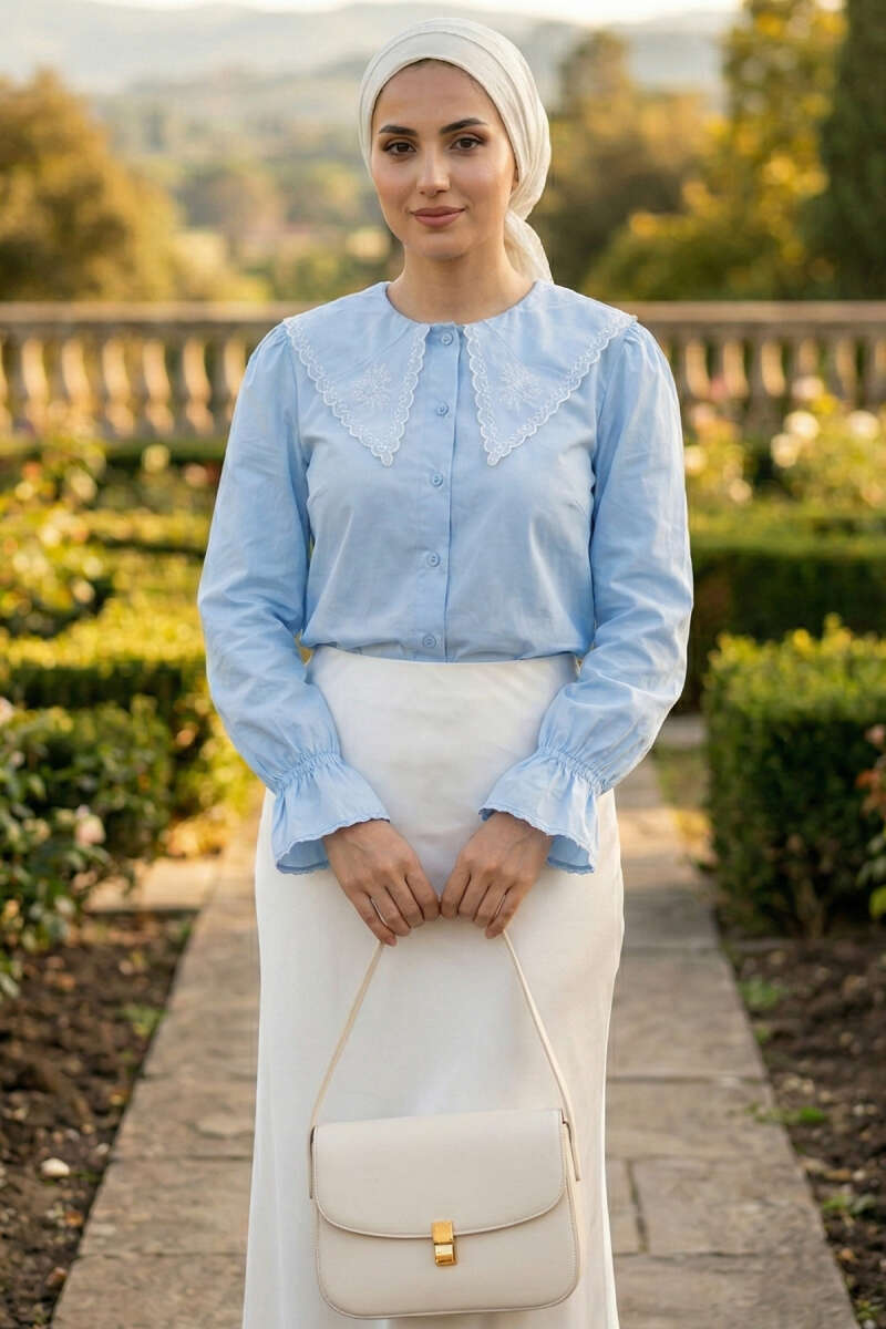 Denizci Yaka Nakışlı Gömlek Bebe Mavi