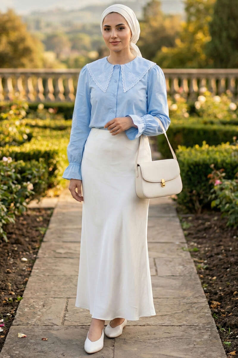 3D Çiçek Aplikeli Gömlek Ekru
