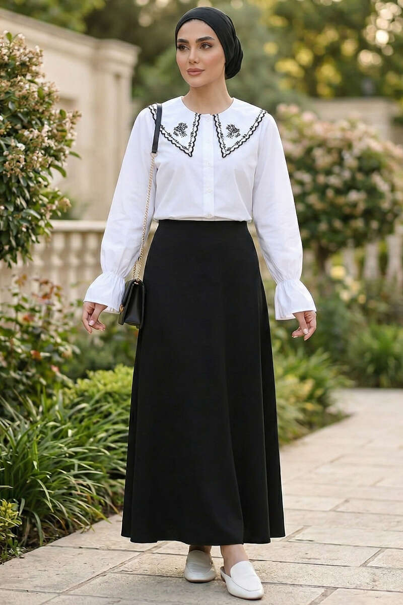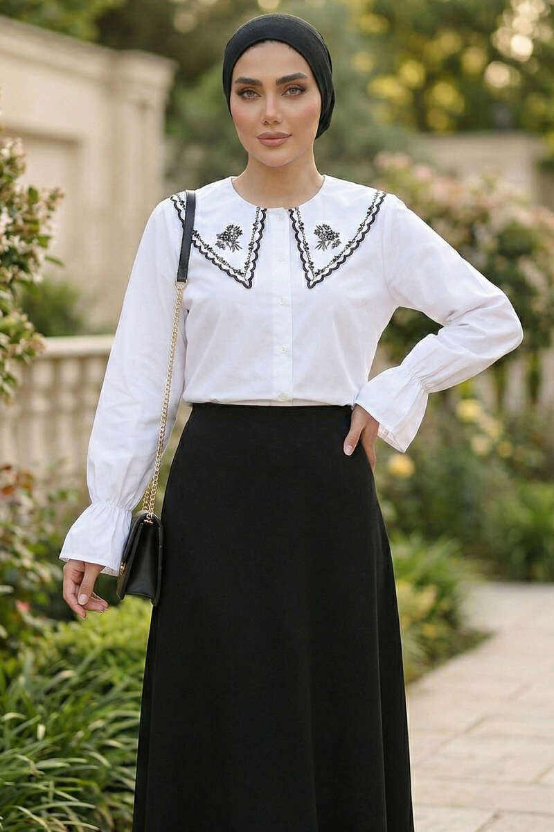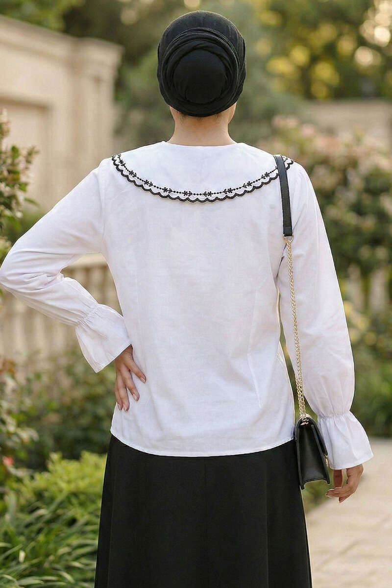 Denizci Yaka Nakışlı Gömlek Beyaz