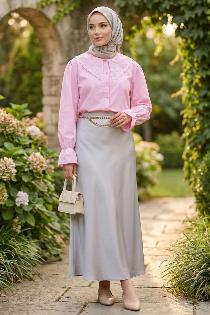 Denizci Yaka Nakışlı Gömlek Pembe