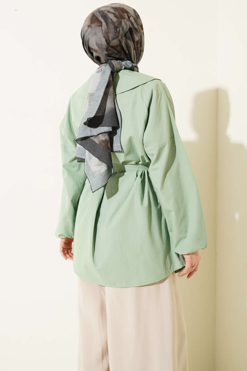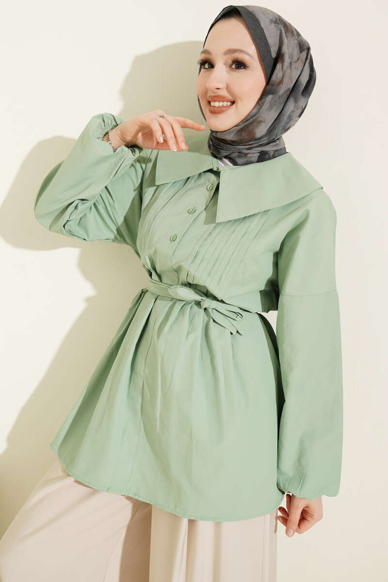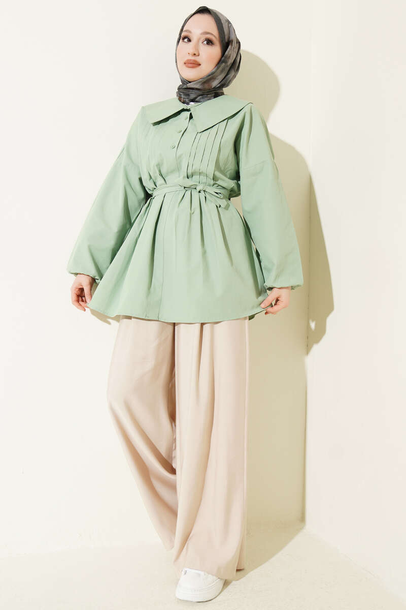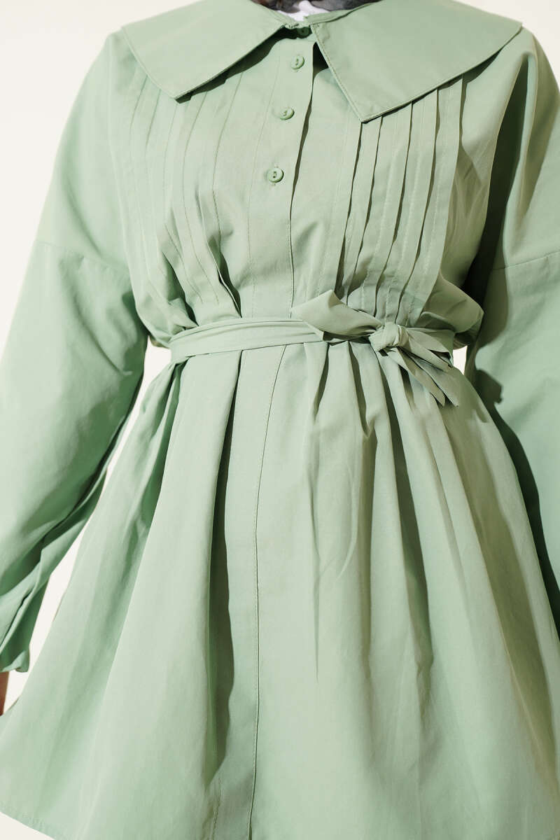 Denizci Yaka Nervür Detaylı Tunik Çağla Yeşili