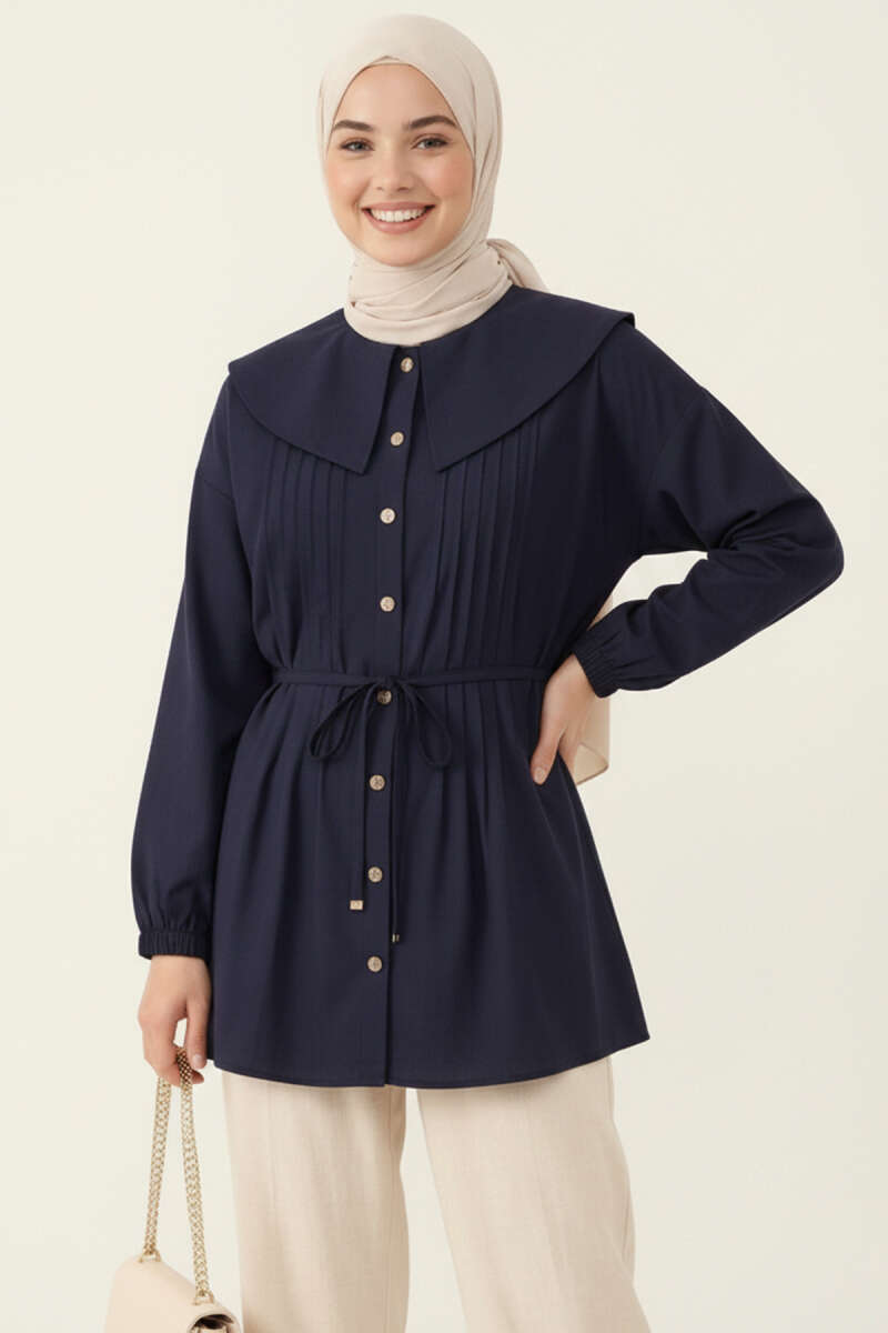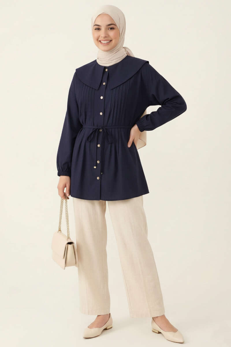 Fiyonklu Lastikli Gömlek Lacivert