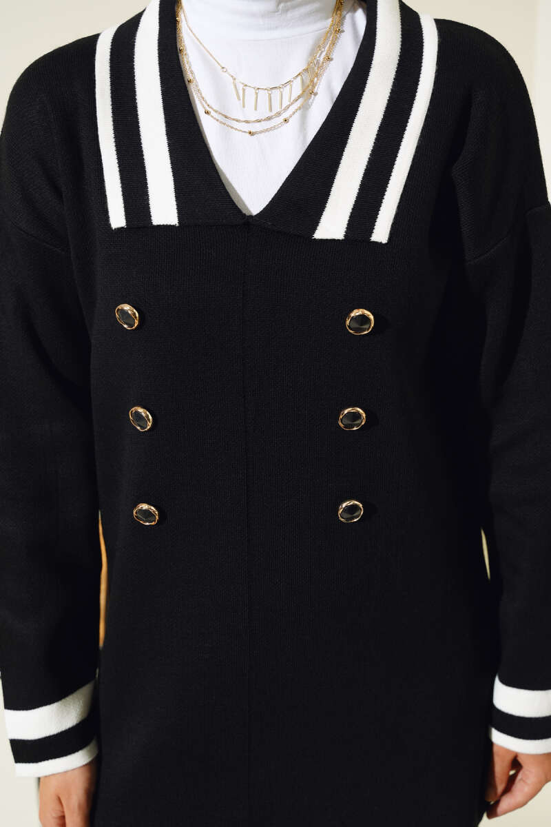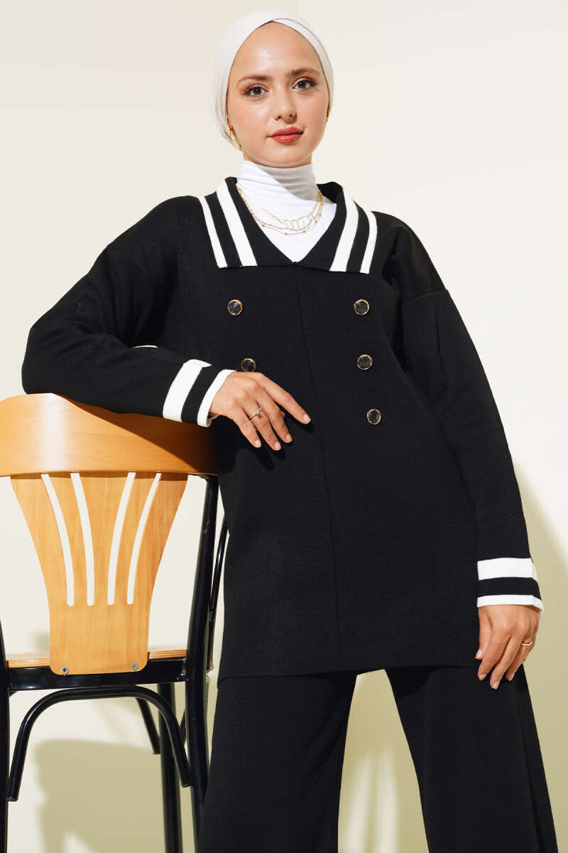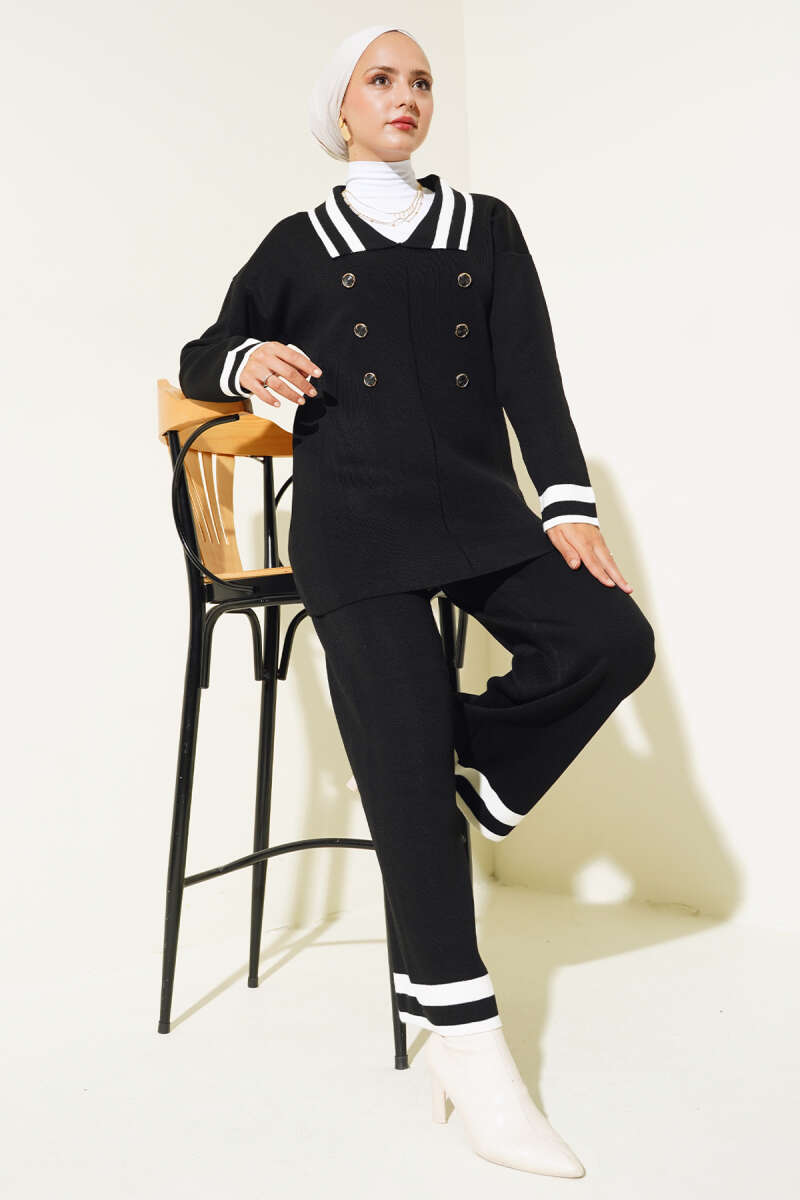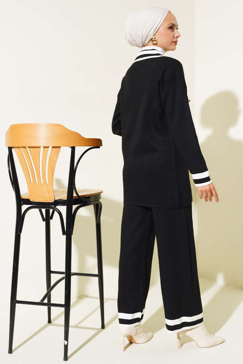 Balon Kol Balıkçı Yaka Triko İkili Takım Siyah