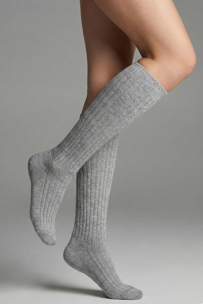 Derbili Dizaltı Yün Çorap Gri