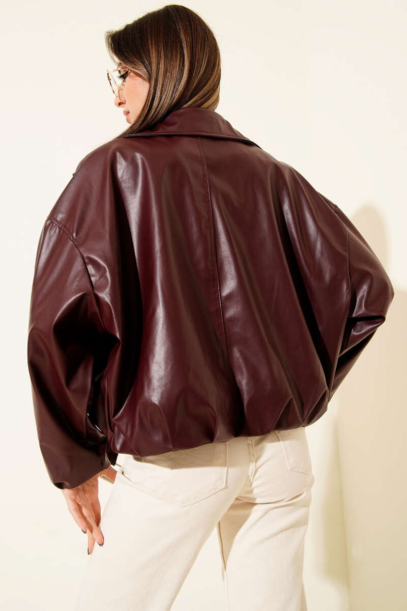 Gold Düğmeli Şeritli Triko Hırka Kahve