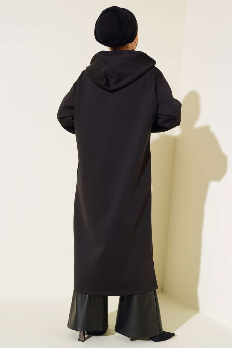 Kol Ribanalı Kapüşonlu Buklet Kap Siyah