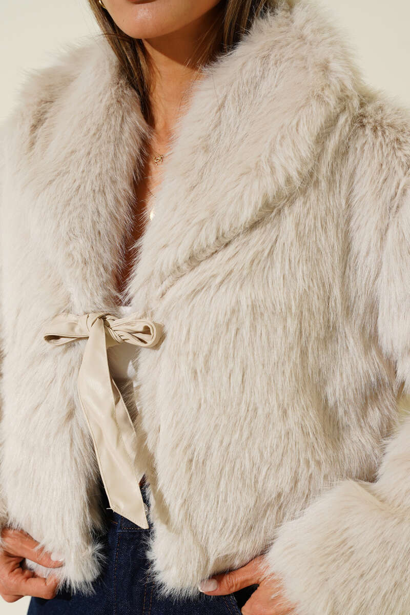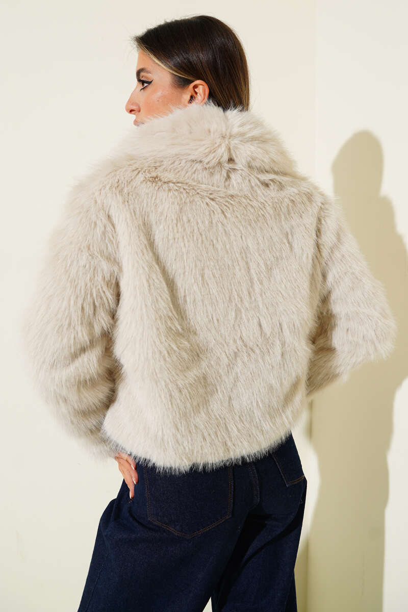 Yakası Kürklü Kuşaklı Kısa Mont Siyah