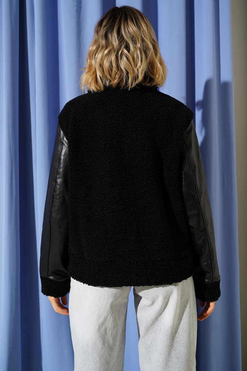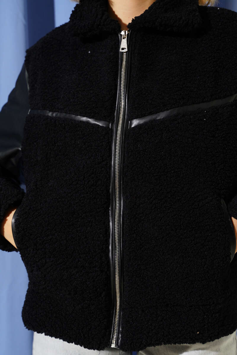 Bel Lastikli Çıtçıtlı Deri Ceket Kahve