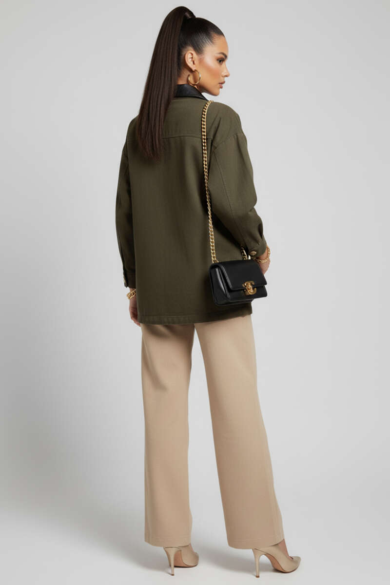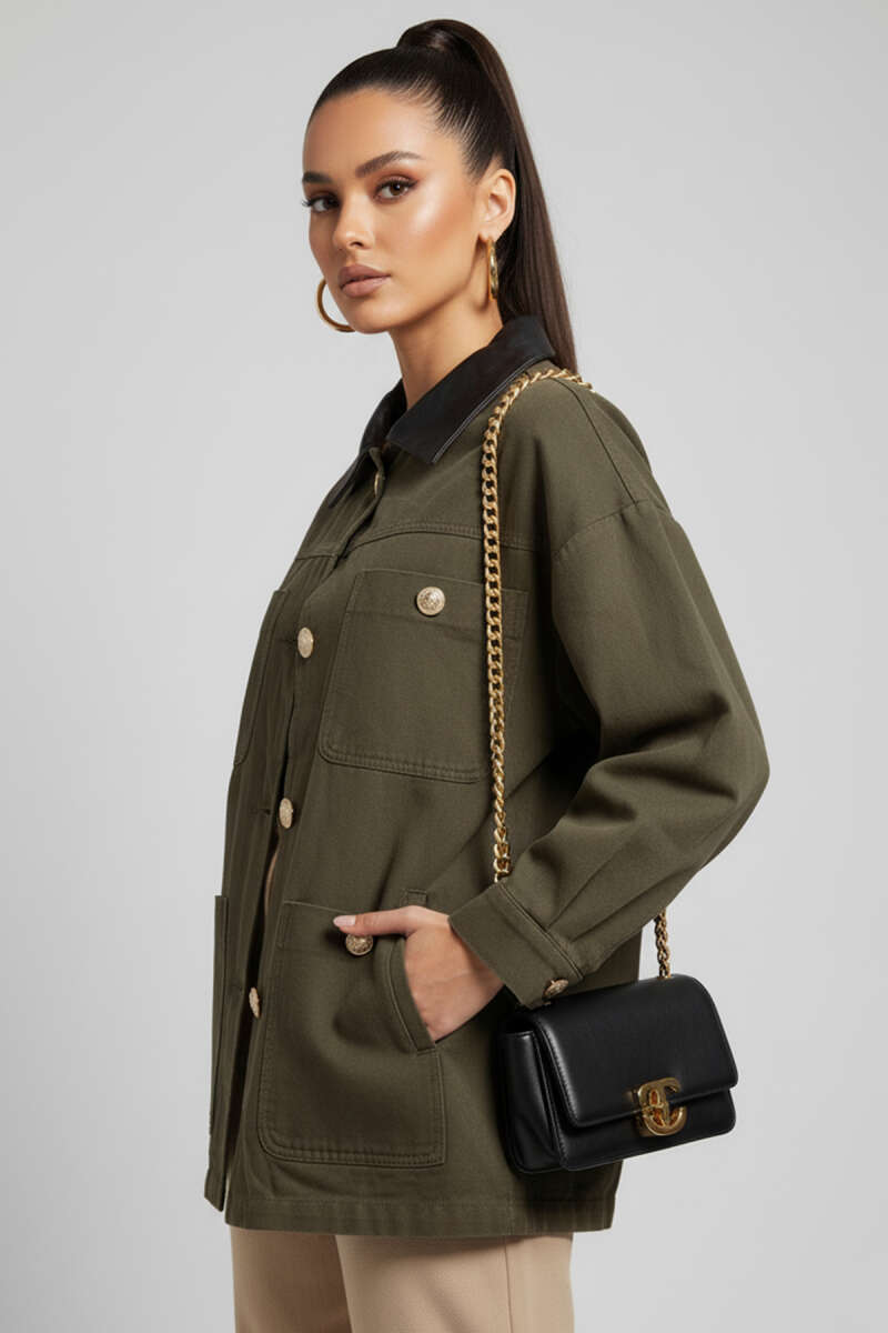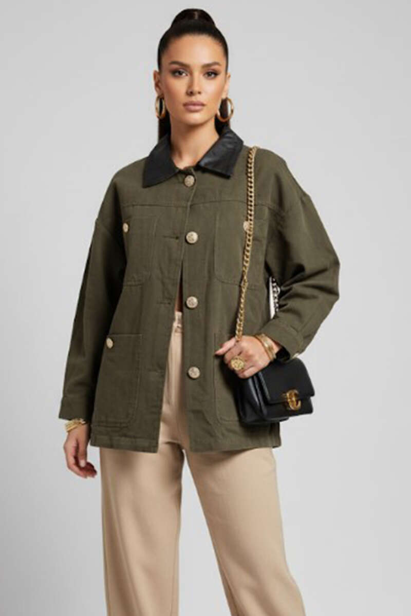 Deri Gömlek Yakalı Düğmeli Ceket Haki