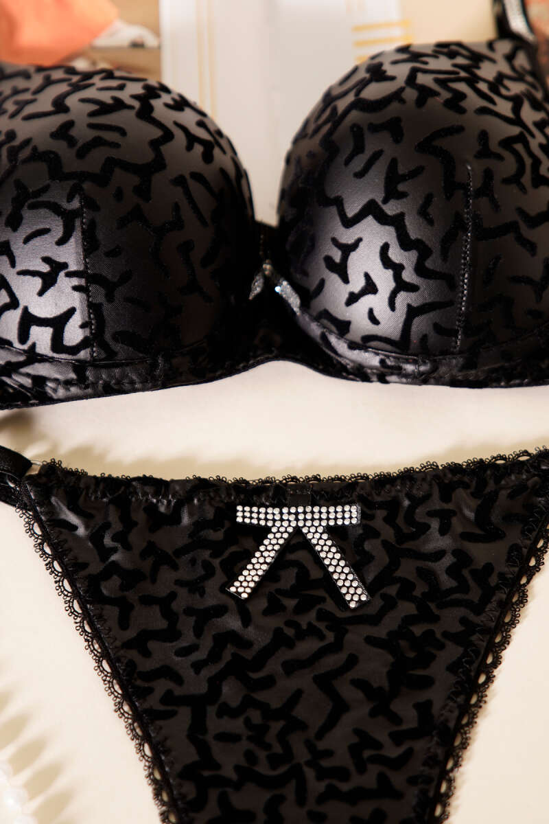 Deri Görünümlü Destekli Sütyen Takım Siyah