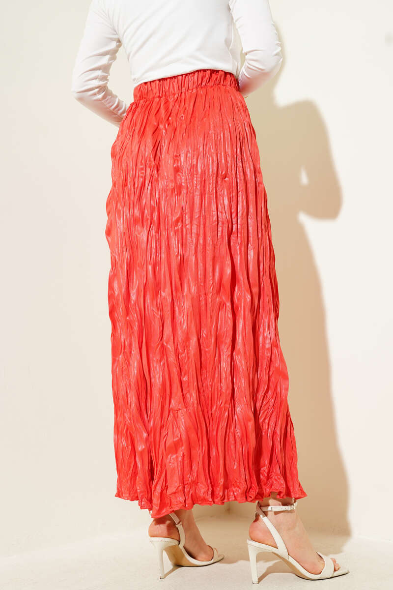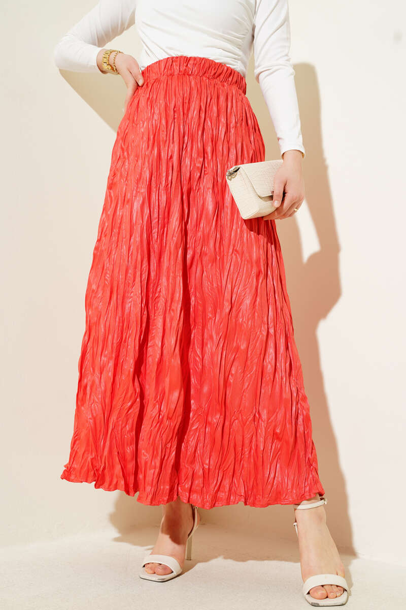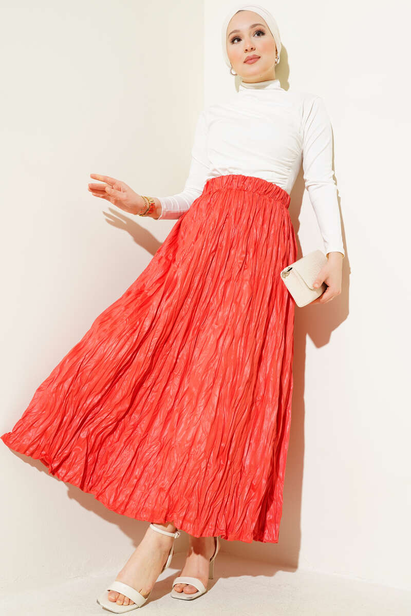 Ekoseli Kemerli Şifon Etek Mürdüm