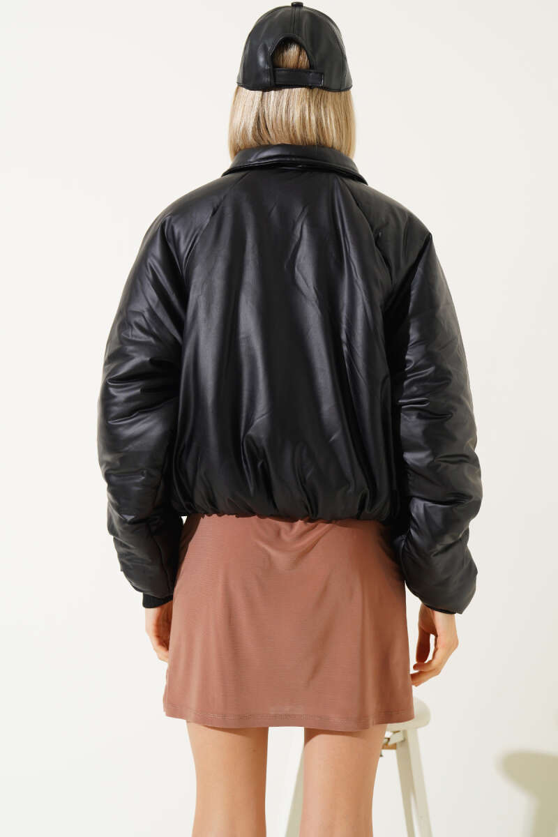Deri Görünümlü Şişme Mont Taba