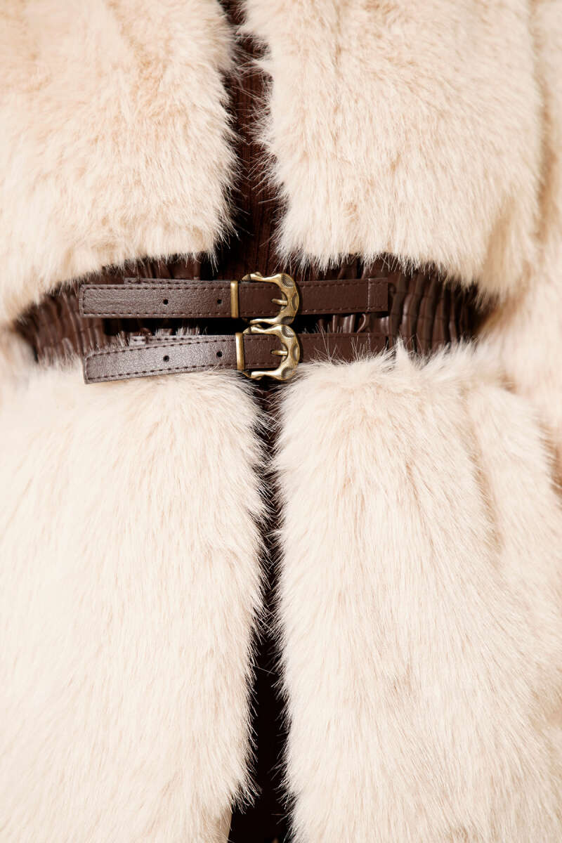 Kürk Detaylı Kapüşonlu Kapitone Mont Taş