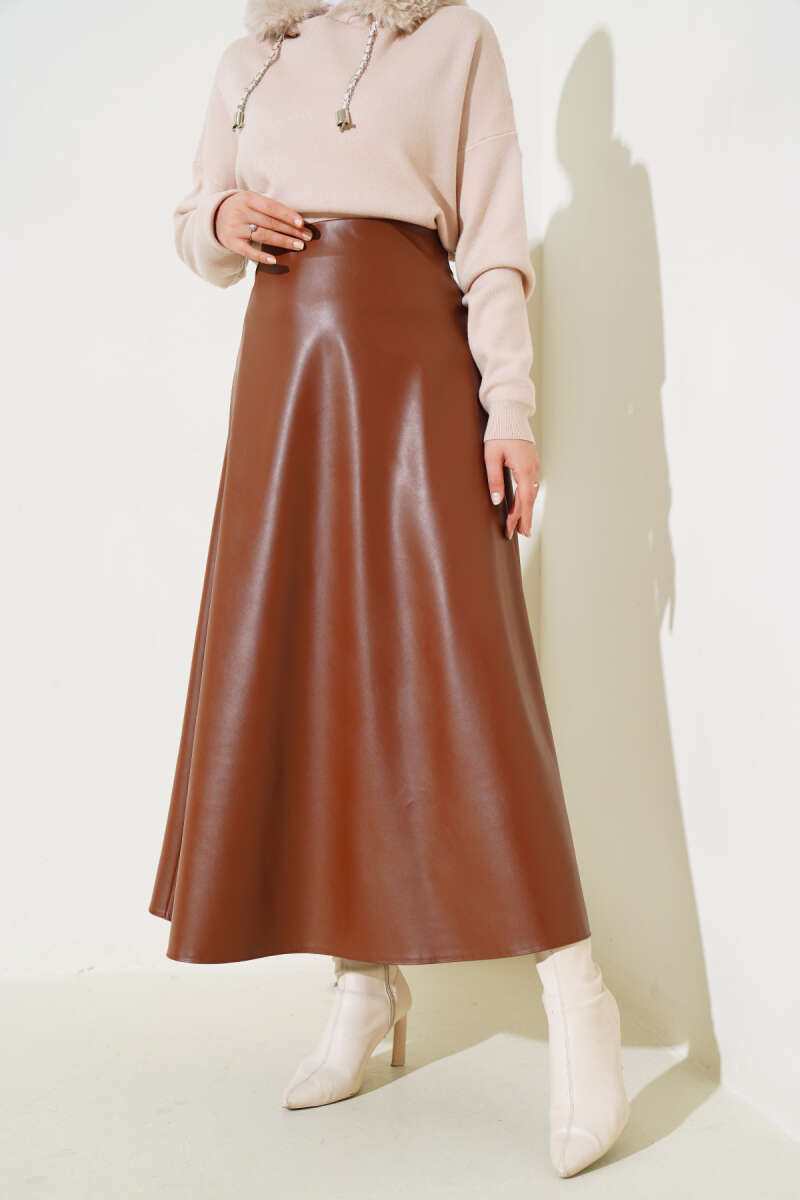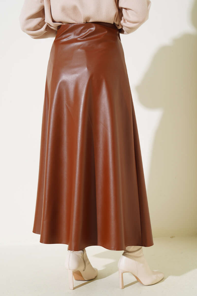 Kemer Aksesuarlı Ekoseli Etek Haki