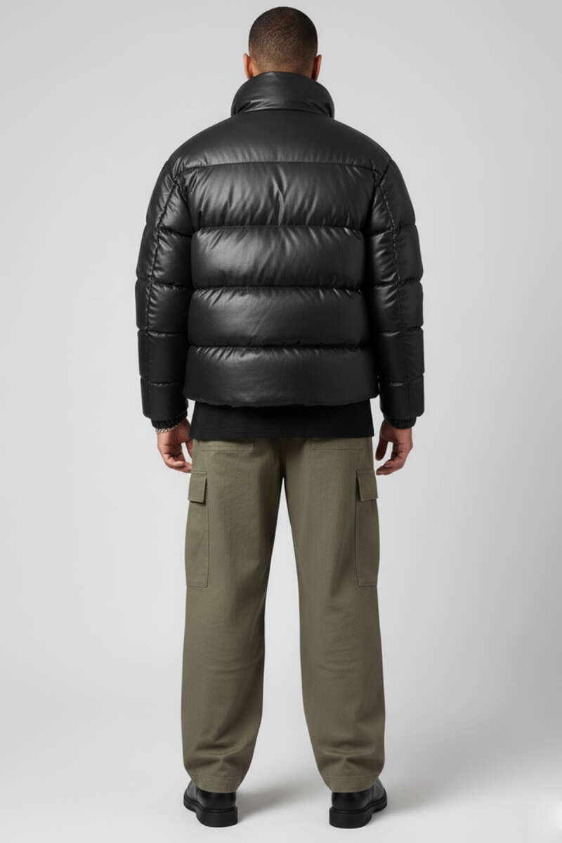 Paça Yırtmaçlı Deri Pantolon Siyah