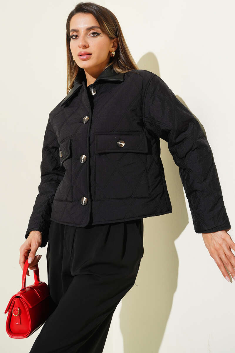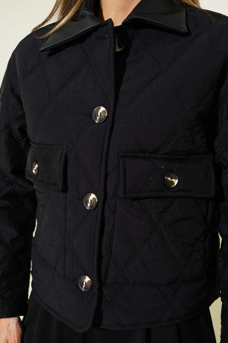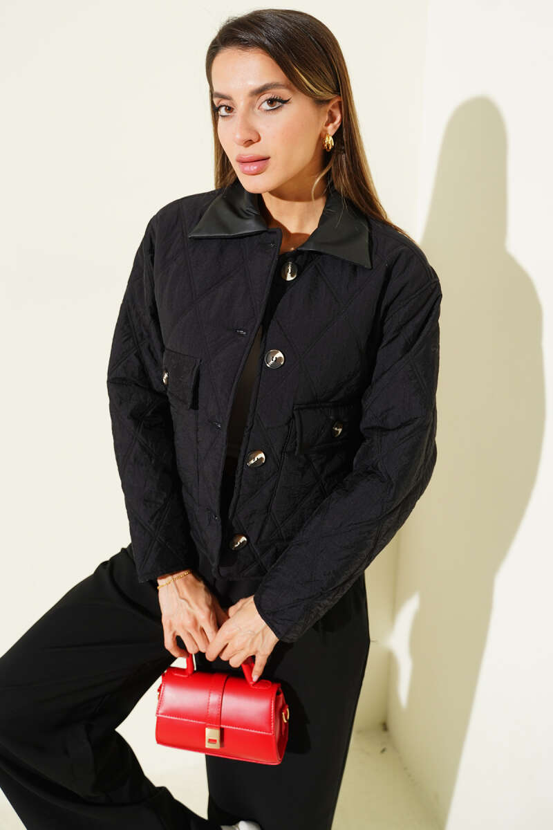Omuz Apoletli Düğme Detaylı Kaşe Kaban Siyah