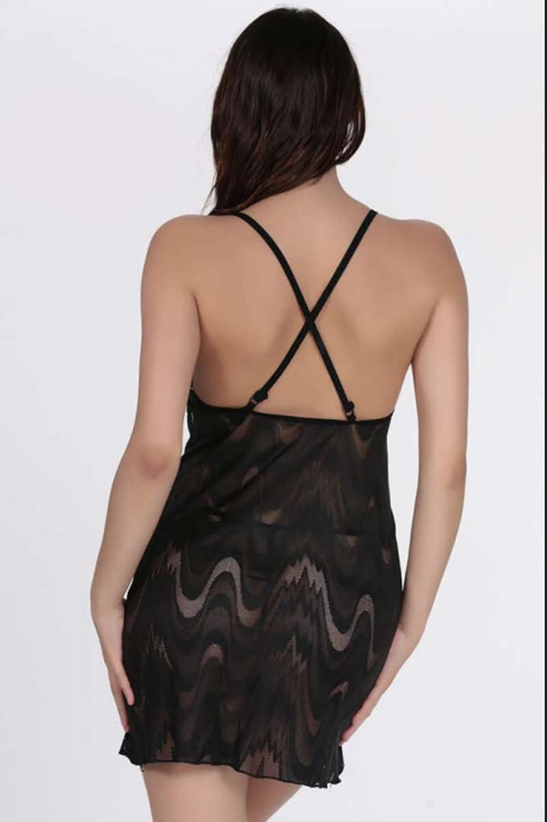 Desen Detaylı Askılı Gecelik Siyah