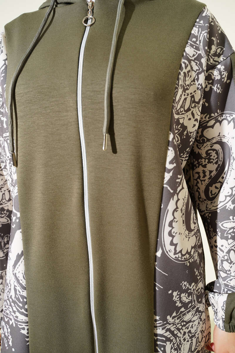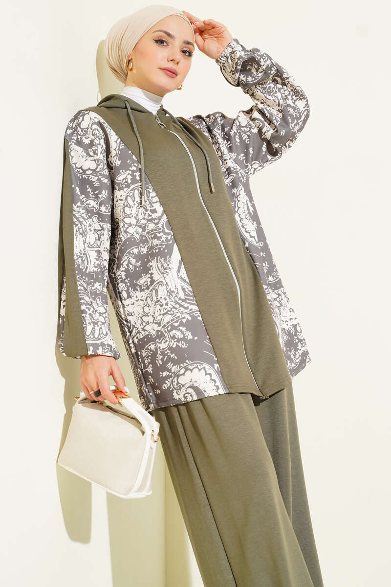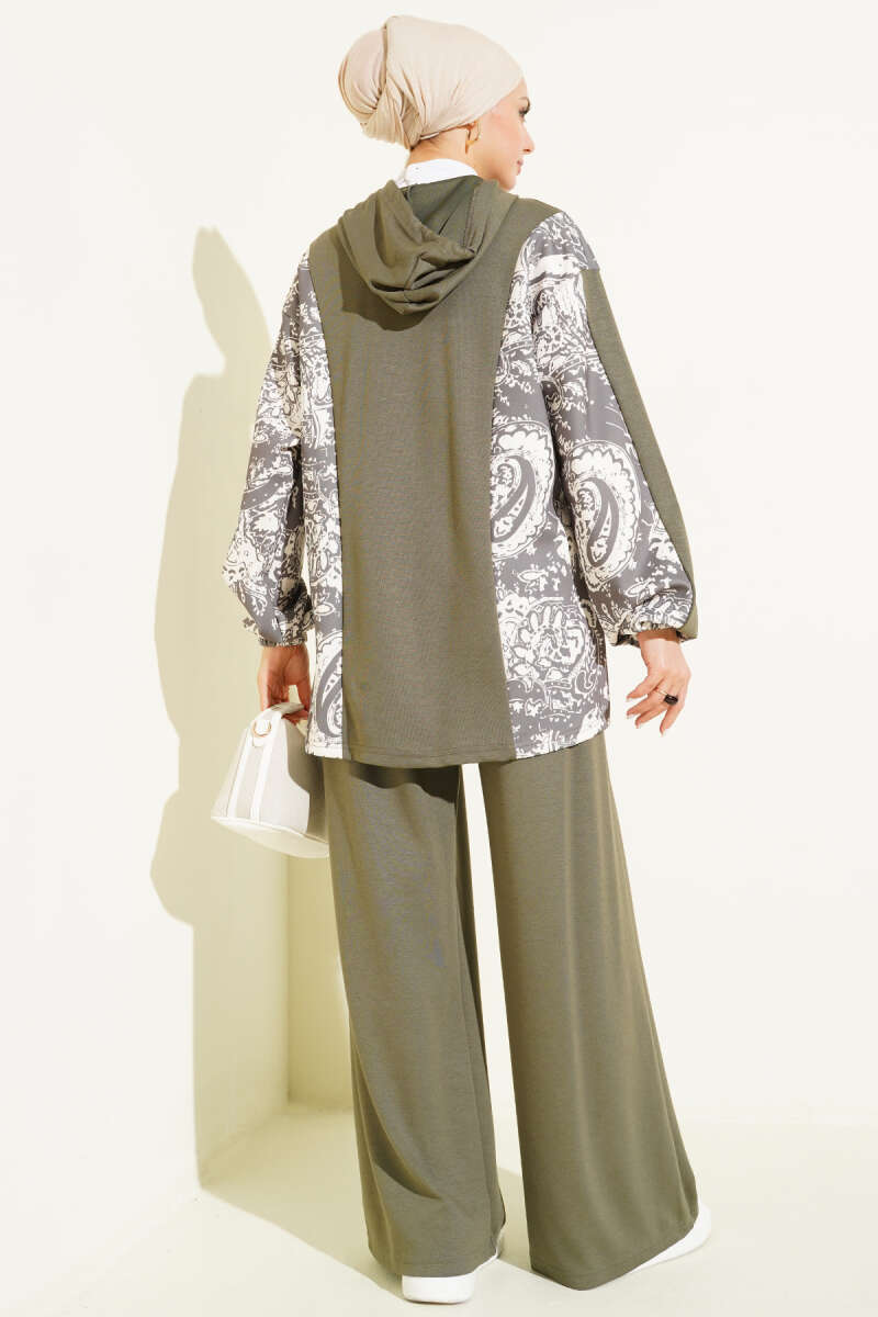 Desen Detaylı Kapüşonlu İkili Takım Kahve
