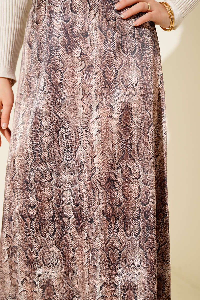 Desen Detaylı Saten Etek Kahve