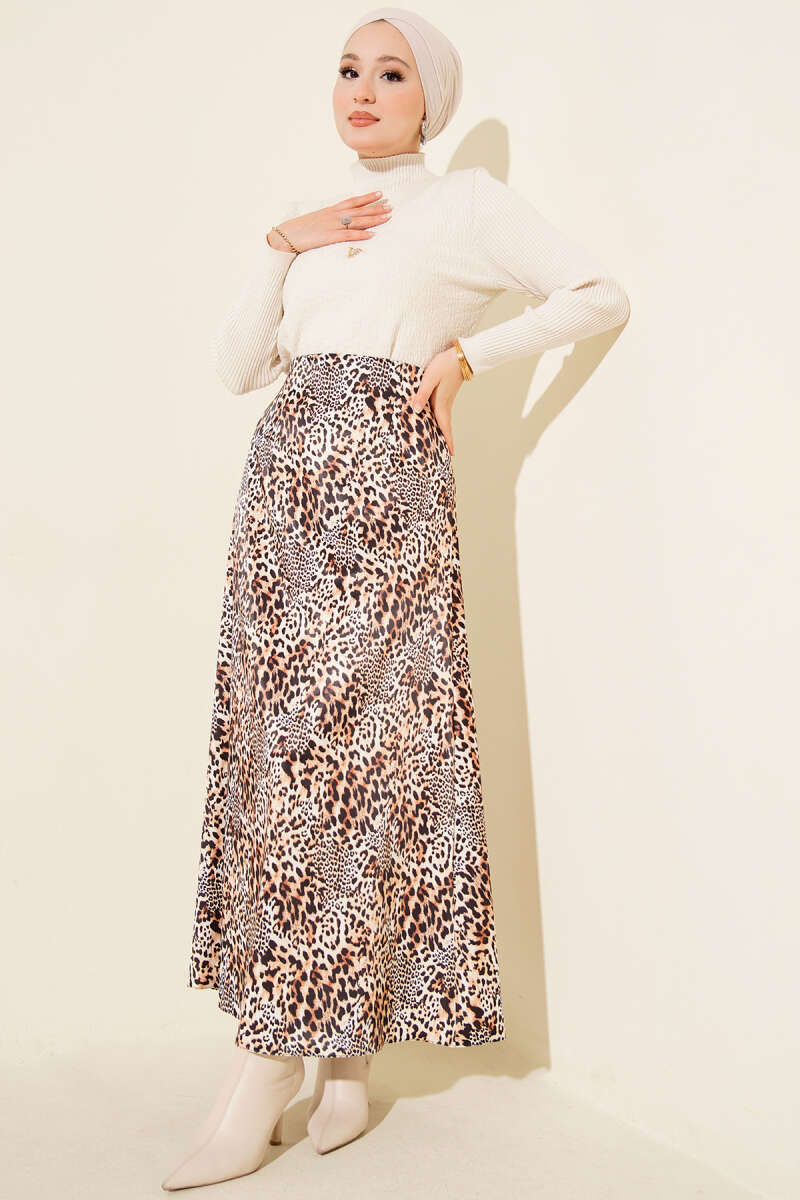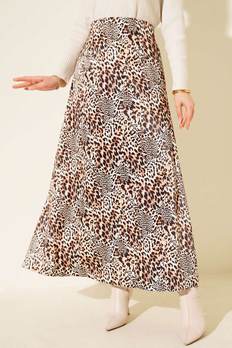 Desen Detaylı Saten Etek Leopar
