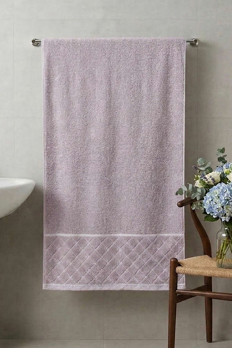 Desen Detaylı Şerit Geçişli Banyo Havlusu Lila