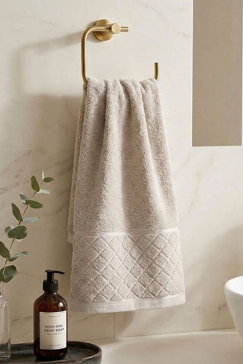 Doğal bej tonlarının sakinliğini, modern baklava desenli nakış detaylarıyla birleştiren bu özel koleksiyon, yumuşak dokusuyla cildinize hak ettiği değeri verir.