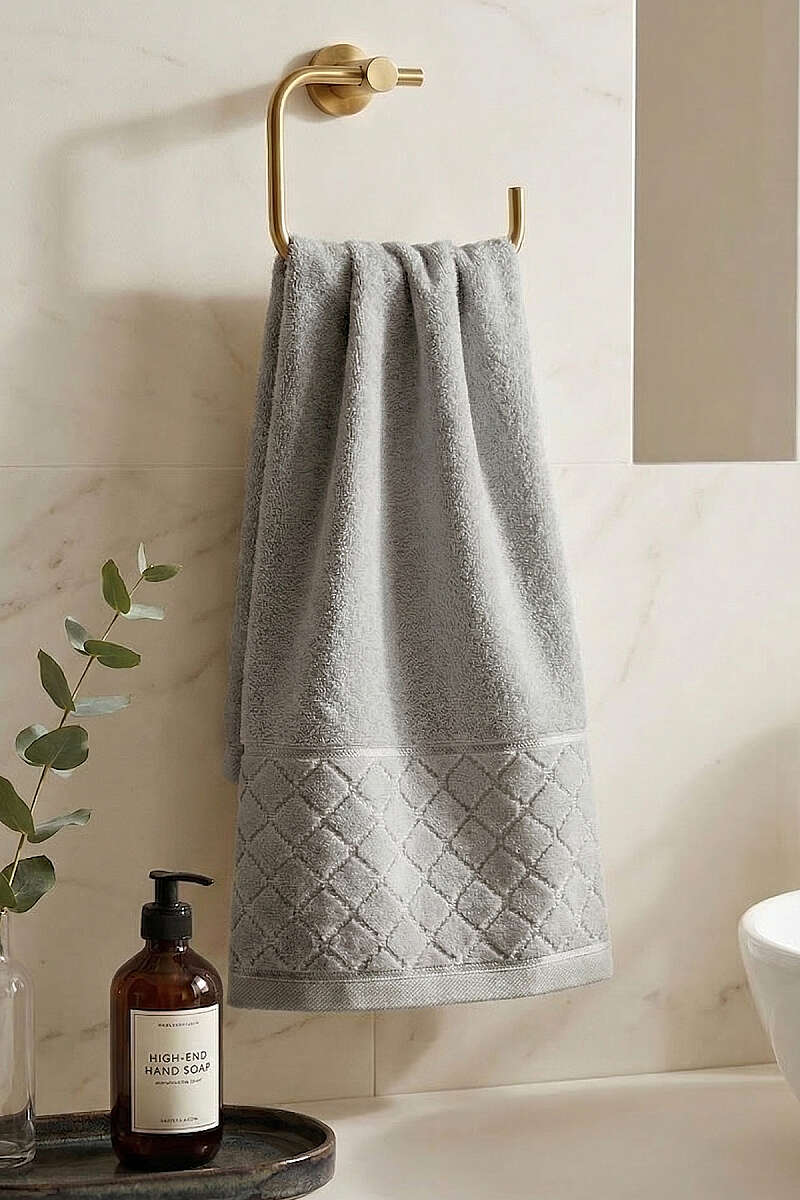 Desen Detaylı Şerit Geçişli El ve Yüz Havlusu Gri