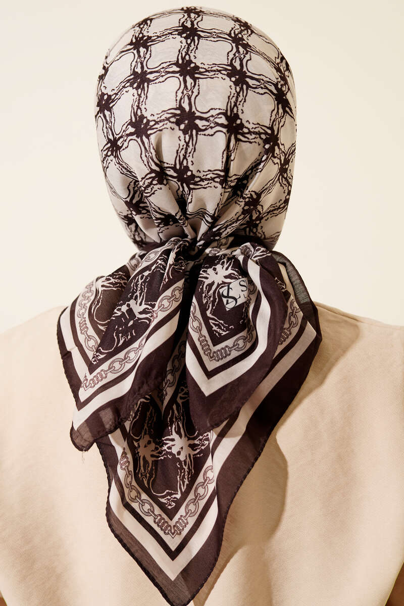 Desenli Acı Kahve Serisi Eşarp Asorti 3