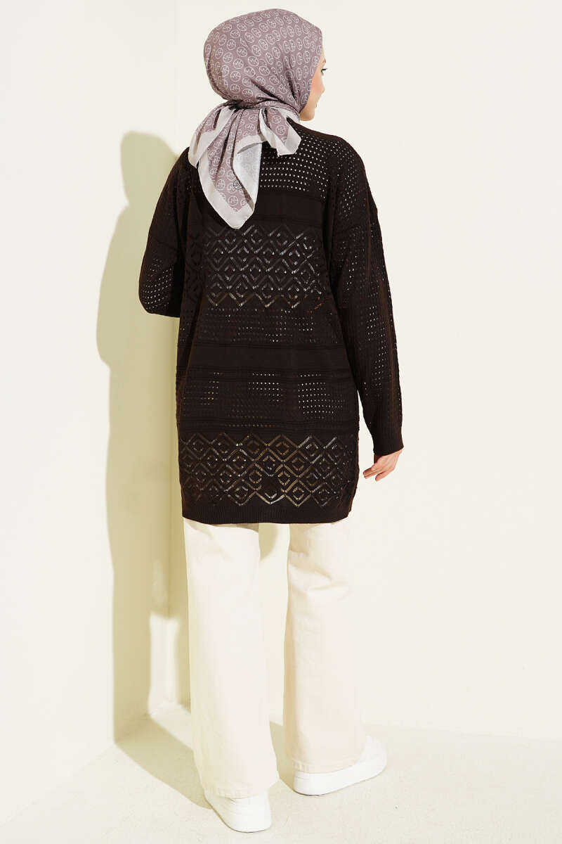 Desenli Ajurlu Basic Triko Hırka Kahve