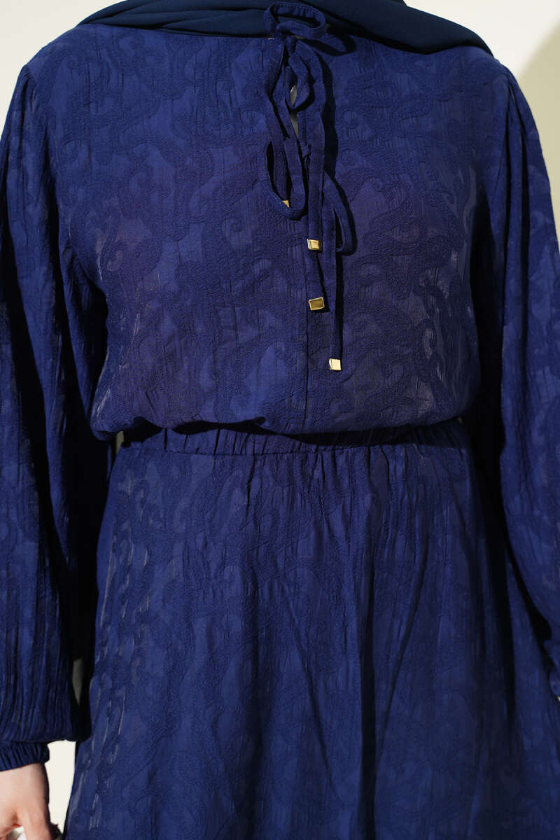 Gelince Haber VerDokusuyla fark yaratan, modern ve feminen hatların birleştiği bu özel tasarım ikili takım, gardırobunuzun en asil parçalarından biri olacak. Kendinden desenli jakarlı kumaşı ve dökümlü kesimiyle hem şık davetlerde hem de özel günlerde konforunuzdan ödün vermeden dikkatleri üzerinize çekmenizi sağlar.