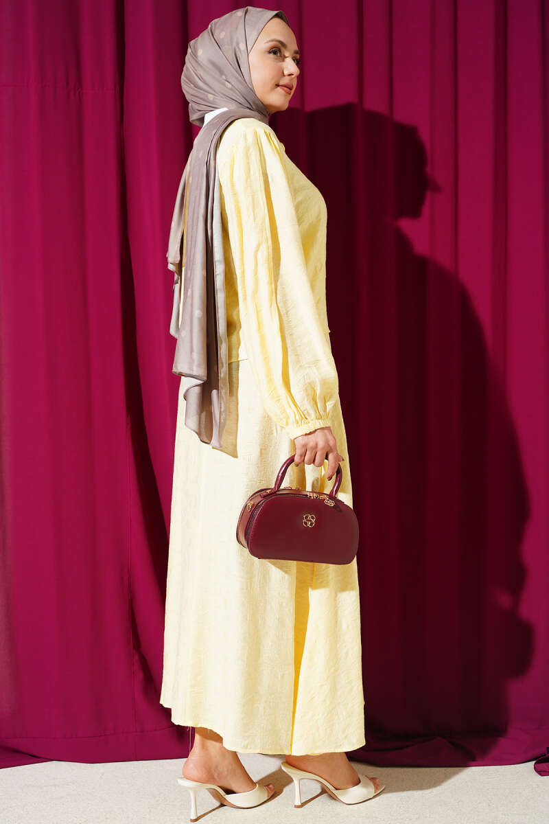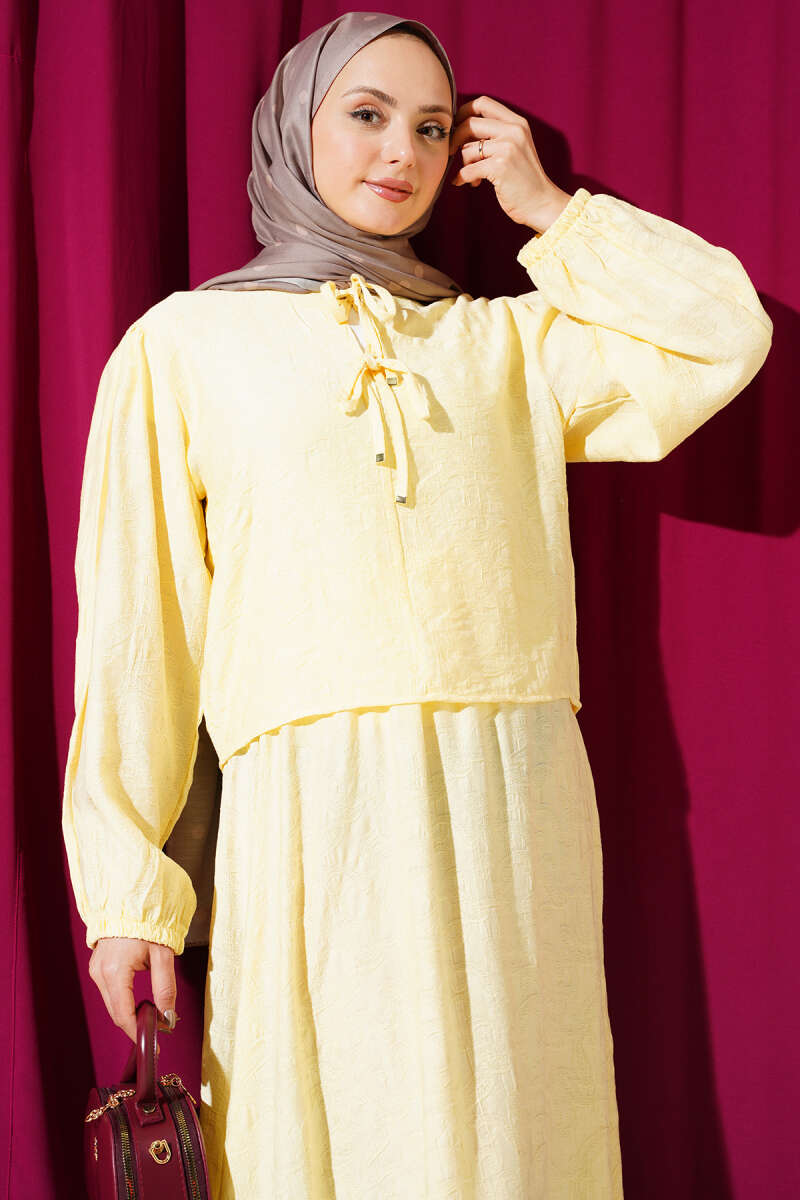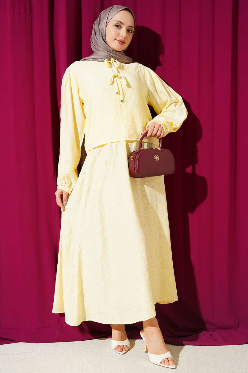Desenli Bağlama Detaylı Etekli İkili Takım Sarı