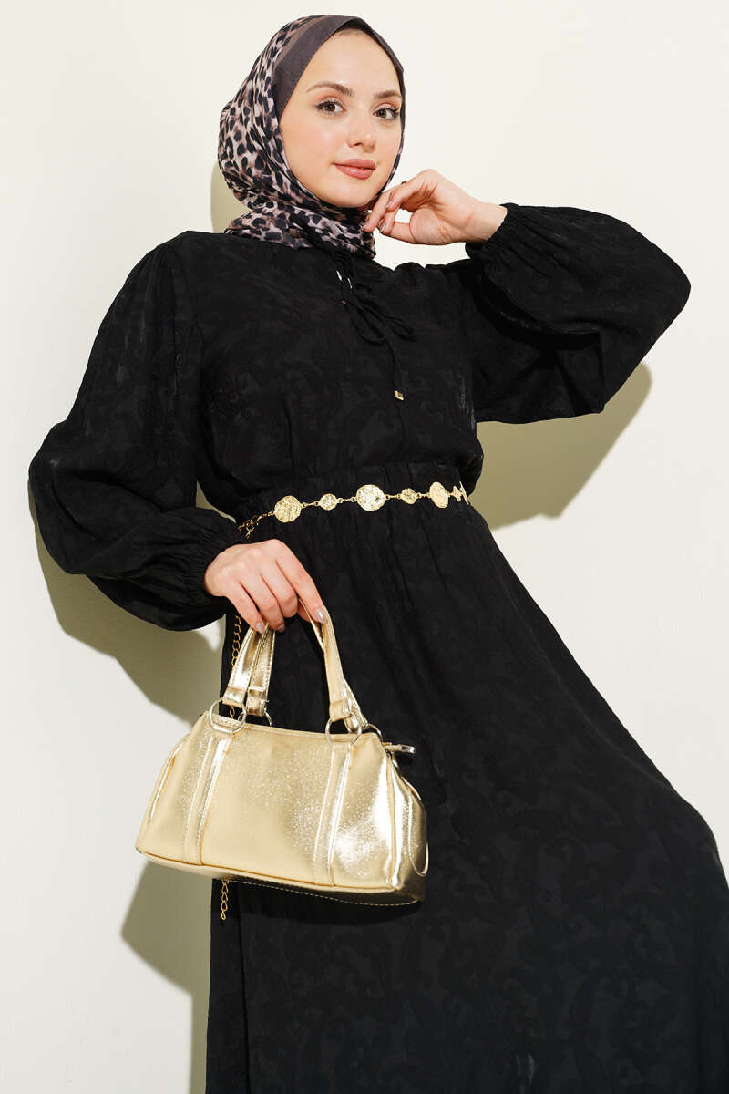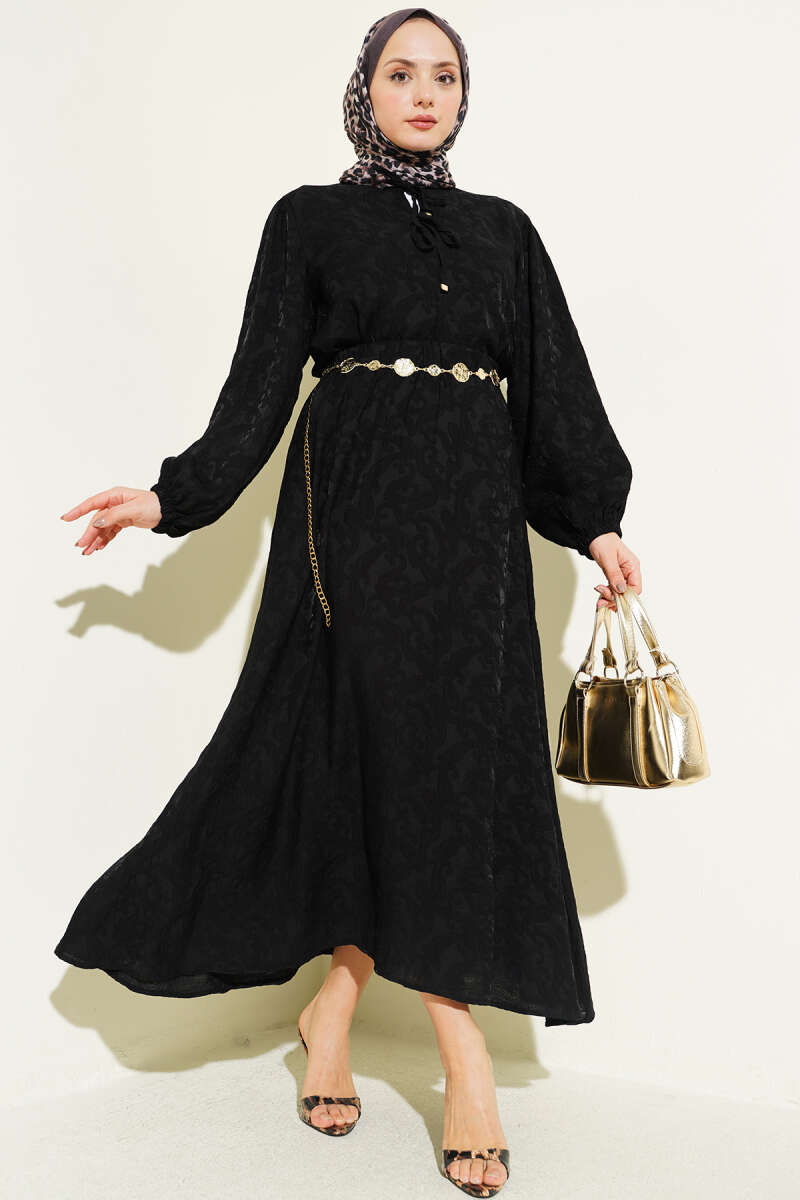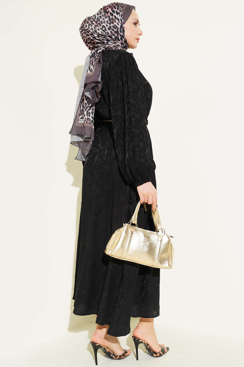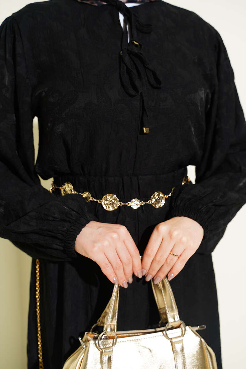 Desenli Bağlama Detaylı Etekli İkili Takım Siyah