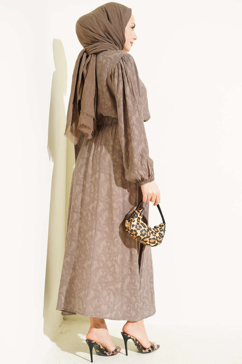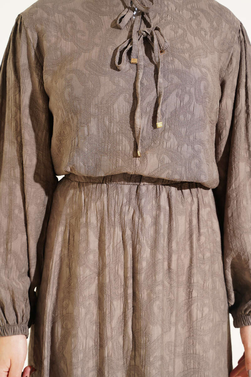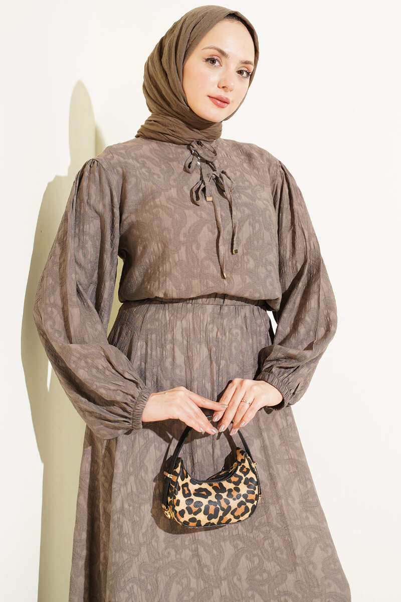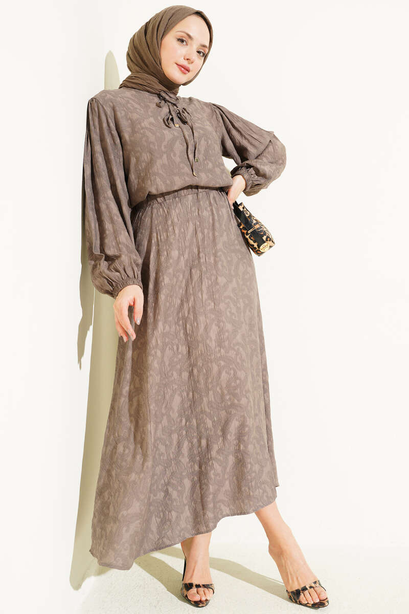 Desenli Bağlama Detaylı Etekli İkili Takım Vizon