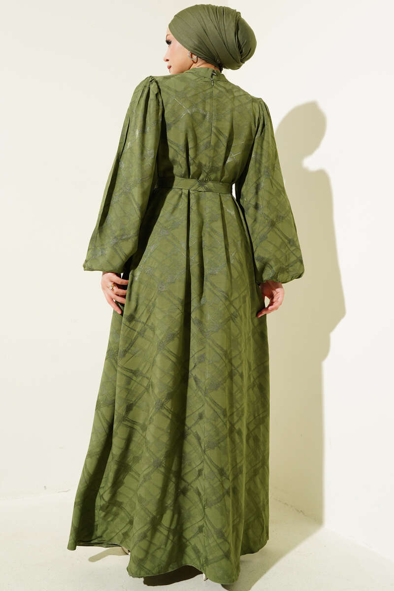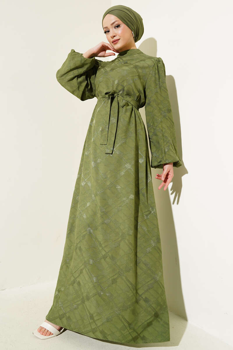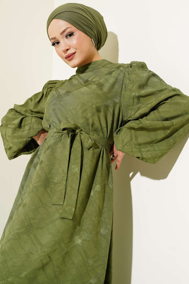 Şerit Ajur Desen Triko Elbise Zümrüt Yeşili