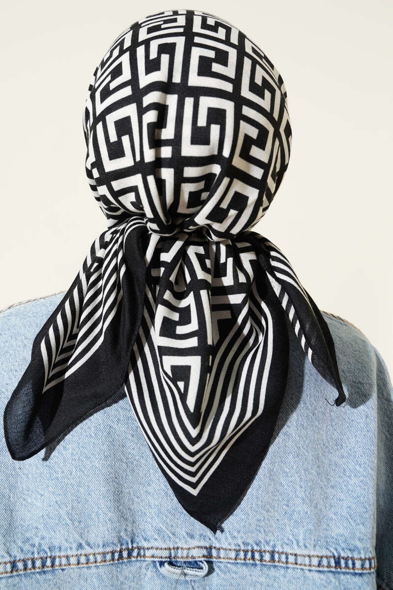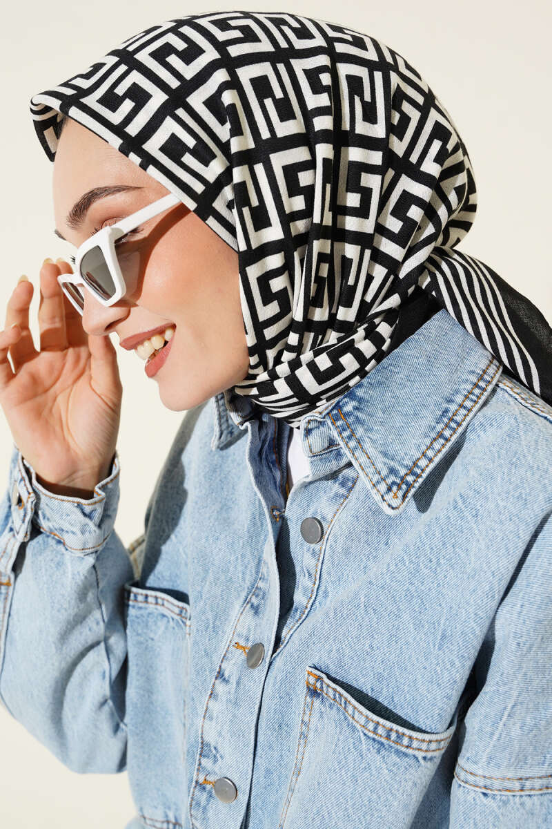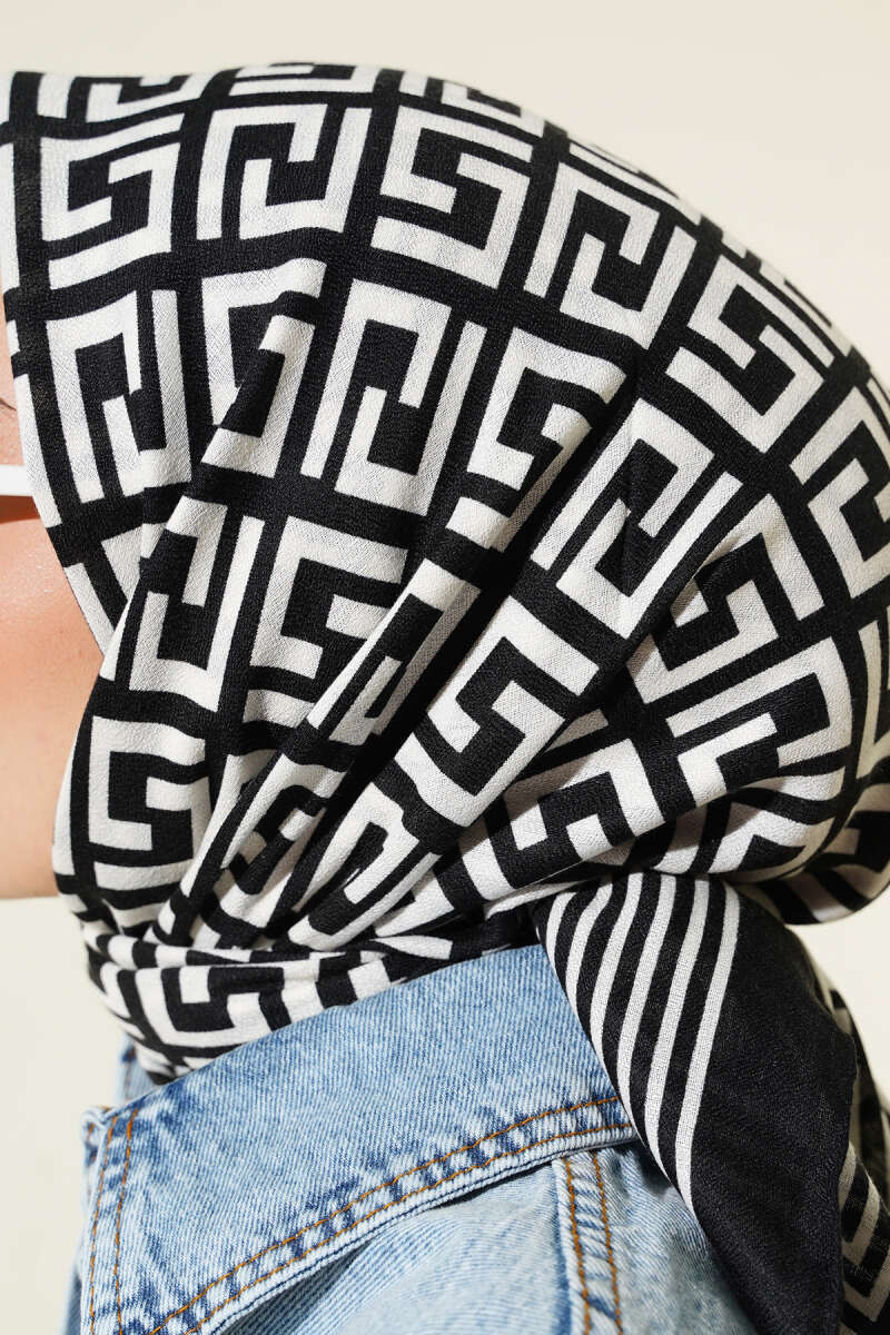 Piksel Paisley Desen Şal Siyah