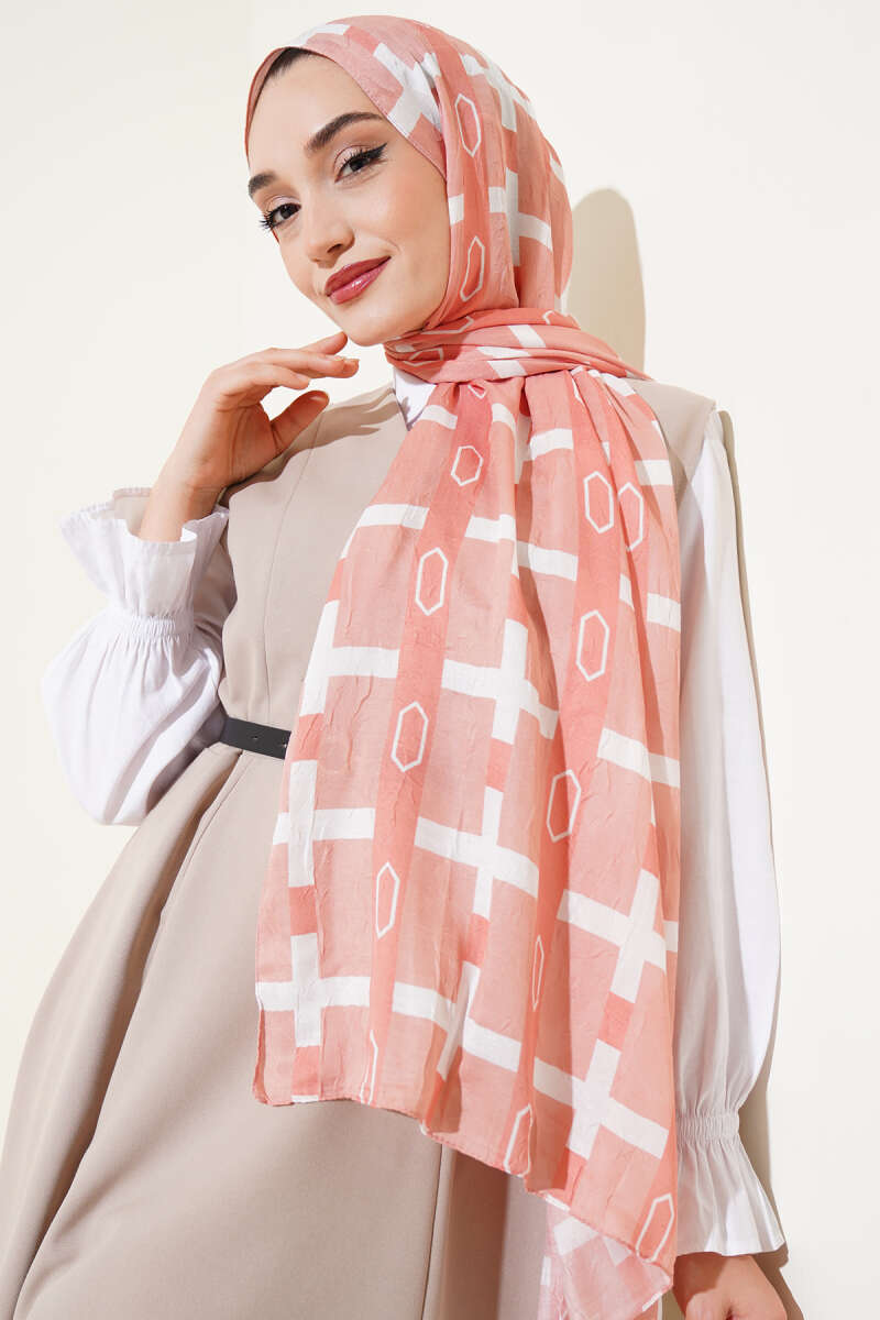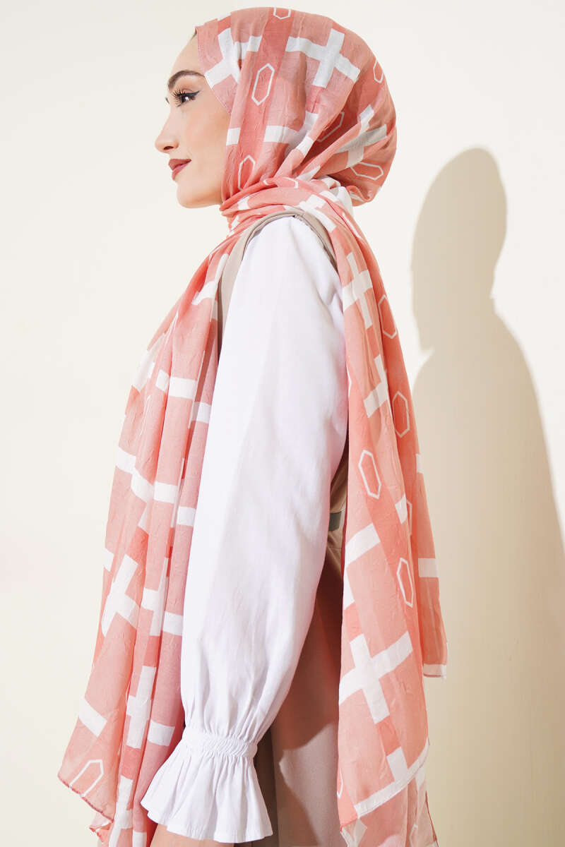 Şerit Geçişli Otantik Desenli Şal Vizon