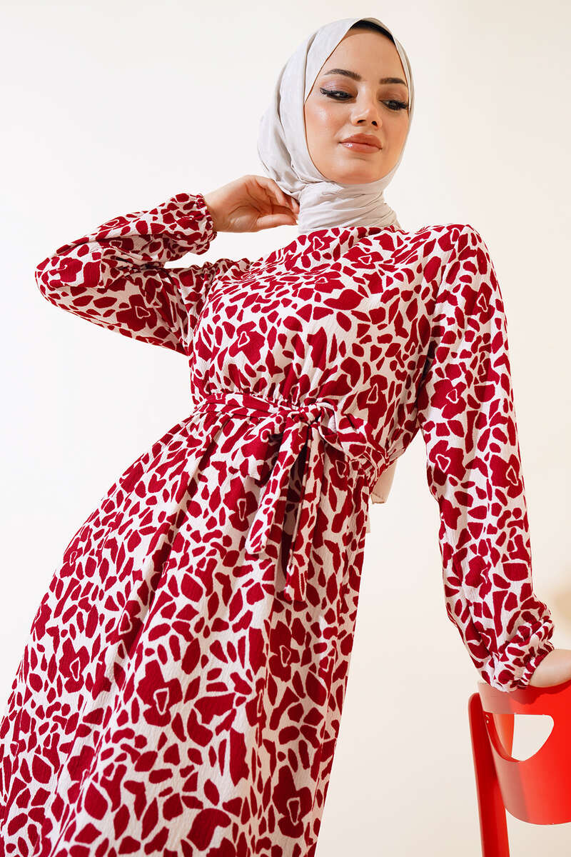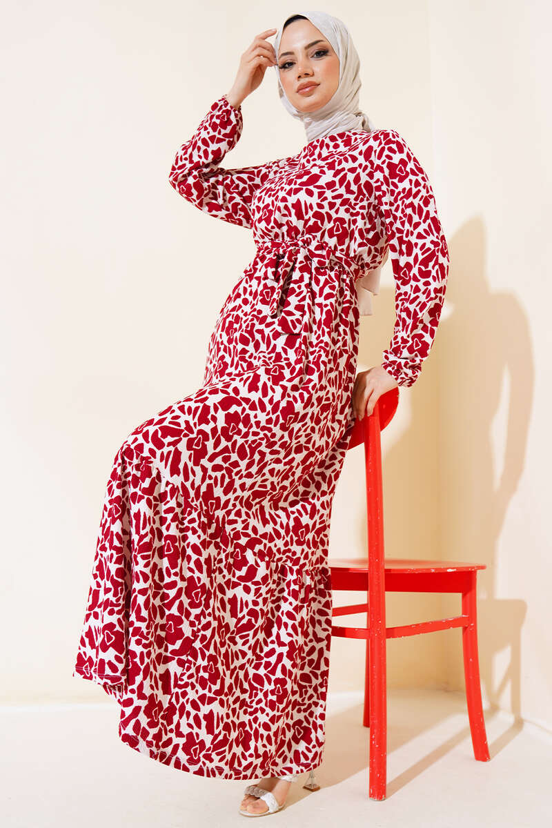 Yeni sezon elbisemizi çok seveceksiniz Elbisemizin önü ve omuzu fırfırlıdır. Önü yarım düğmelidir. Elbisemizin kol bilekleri ve beli lastiklidir. Astarsızdır. Bürümcük kumaştır. Kendi kumaşından kuşağı vardır. Renk seçenekleri olan elbisemiz yaz ve bahar ayları için sizleri bekliyor.