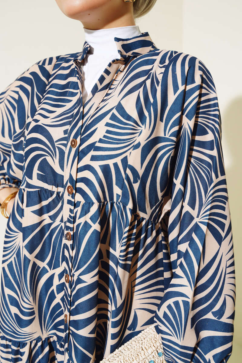 Bel Tünelli Gömlek Yaka Kot Elbise Lacivert