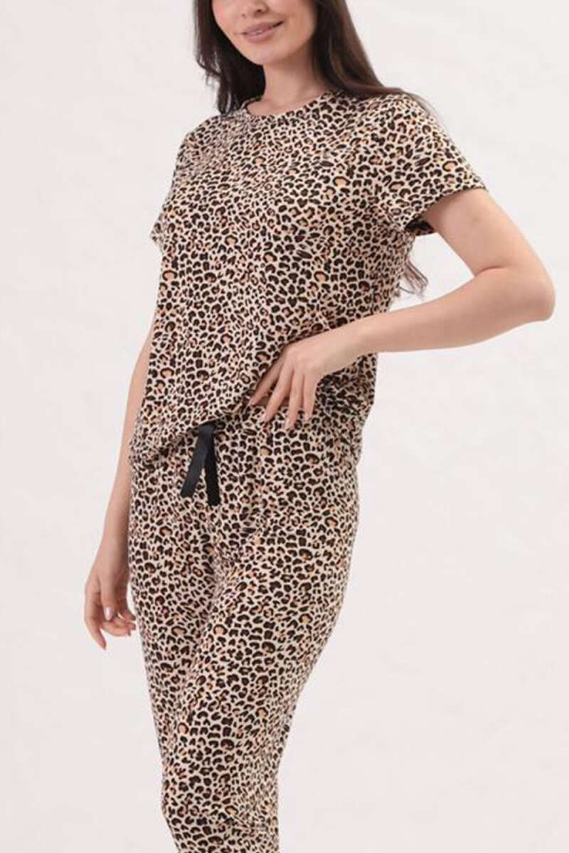 Desenli Bisiklet Yaka Pijama Takımı Camel
