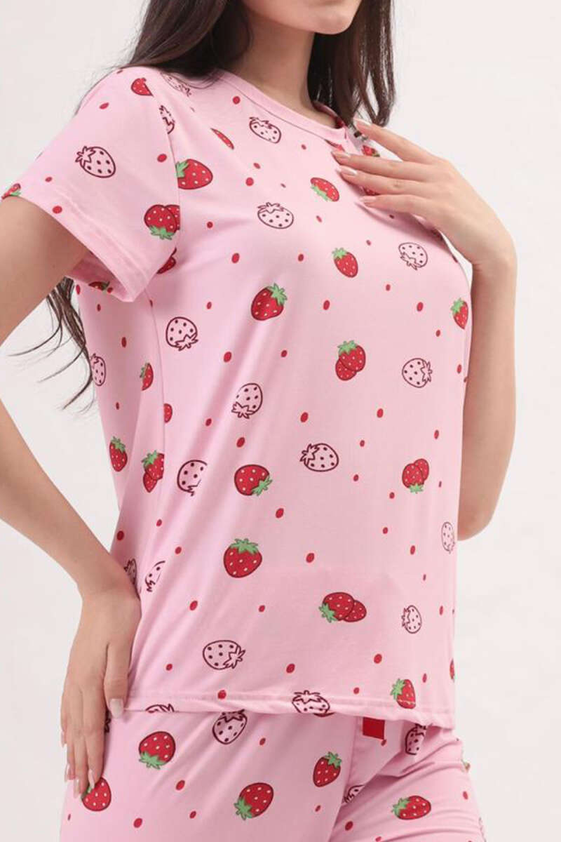 Desenli Bisiklet Yaka Pijama Takımı Şeker Pembe